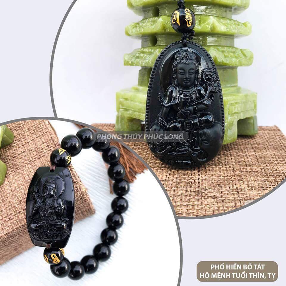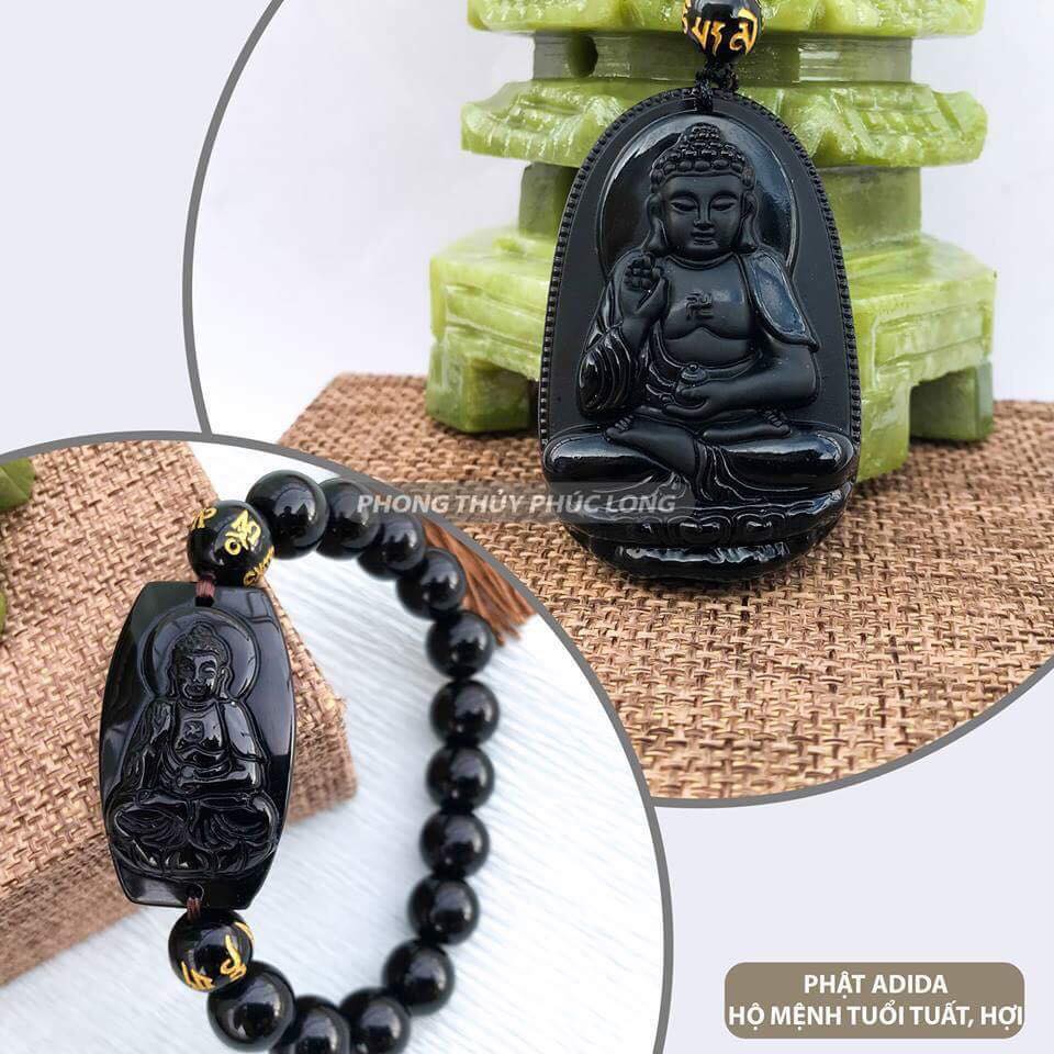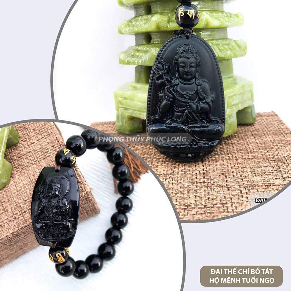 ️Mỗi người khi sinh ra đều gắn liền với 12 con giáp, Mỗi một con giáp sẽ có một vị Phật độ mệnh riêng, phù hộ độ trì, mang lại bình an, sức khỏe cho mỗi người. Các bạn có thể tham khảo các vị Phật độ mệnh cho bạn theo bảng sau nhé: ?Tuổi Sửu và tuổi Dần: Hư Không Tạng Bồ Tát danh hiệu AKASAGARBHA chính là vị Phật hộ mệnh của các bạn. Ngài còn có mật hiệu là Khố Tạng Kim Cương, biểu tượng cho sự giàu có. Hư Không Tạng Bồ Tát là Tam thế chư Phật đệ nhất phụ thần, công đức bao la phủ kín hư không, trí tuệ vô biên, lòng kiên trì và sức chịu khổ như kim cương. ?Tuổi Thìn và Tuổi Tỵ: Phổ Hiền Bồ Tát danh hiệu là Samantabhadra chính là vị Phật bản mệnh cho tuổi Thìn và tuổi Tỵ. Ngài có năng lực siêu phàm, thân phân tại thập phương. Ngài cùng với Thích Ca Mâu Ni, Văn Thù Bồ Tát hợp thành “Hoa Nghiêm tam thánh”. Phổ Hiền Bồ Tát cưỡi voi trắng sáu ngà, tượng trưng cho trí huệ, vượt chướng ngại. Ngài hành nguyện vô cùng, công đức vô tận, tình thương vô biên, thân thân khắp các chùa, tùy duyên giáo hóa chúng sinh. ?Tuổi Mão (Tuổi Thỏ): Vị Phật hộ mệnh cho bạn là Văn Thù Bồ Tát, danh hiệu Manjusri. toàn thân ngài màu tím ánh vàng kim, hình hài như đồng tử. Tay phải cầm kim cương bảo kiếm biểu tượng cho sự sắc bén của trí năng, có thể trảm quần ma loạn vũ, chém đứt mọi buồn phiền. Tay trái cầm cành sen xanh tượng trưng cho trí tuệ tối cao, thân cưỡi sư tử, biểu tượng trí huệ phá đêm tối của Vô minh nên còn được xưng là “Đại trí”. ?Tuổi Ngọ: Đại Thế Chí Bồ Tát chính là vị Phật hộ mệnh của bạn. Ngài chính là vị Phật trợ giúp bên phải Đức Phật A Di Đà. Ngài thường dùng ánh sáng trí tuệ chiếu khắp muôn loài, khiến chúng sinh mười phương thế giới thoát khỏi khổ đau, họa huyết quang kiếp nạn binh đao. Ngài có năng lượng vô thượng, uy thế tự tại, vì thế Đại Thế Chí Bồ Tát đi đến đâu thiên địa chấn động, bảo vệ chúng sinh, trừ tai ách ma quỷ. ?Tuổi Dậu: Bất Động Tôn Bồ Tát, danh hiệu Acalanatha là vị Phật hộ mệnh của bạn, Ngài còn được gọi là Bất Động Minh Vương. “Bất động” chỉ lòng từ bi kiên cố không giao động. Bất Động Minh Vương là vị đứng đầu trong Phật Giáo mật tông bát đại minh vươn. Cho dù gặp bất cứ khó khăn gì cũng đều có thể quét sạch mọi trở ngại. Vẻ ngoài phẫn nộ khiến đám ma quỷ dám dọa dẫm chúng sinh sợ hãi chạy xa. ?Tuổi Mùi và tuổi Thân: Vị Phật hộ mệnh của hai tuổi này chính là Đại Nhật Như Lai. Đây chính là pháp thân của Phật Thích Ca. Ngài là biểu hiện của ánh sáng Trí Tuệ, có nghĩa là soi sáng cùng khắp muôn nơi, diệt trừ mọi chỗ u ám, bóng tối của vô minh. Khác với mặt trời, trí sáng của Phật chiếu khắp mọi nơi, chẳng kể trong ngoài, không phân phương hướng, khu vực và ngày đêm. ?Tuổi Tuất và Tuổi Hợi: Được Phật A Di Đà hộ mệnh. A Di Đà Phật danh hiệu là amitayusa Đây là tên của một vị Phật được tôn thờ nhiều nhất trong Đại thừa ượng trưng cho Từ bi và Trí tuệ. Ngài cũng chính là giáo chủ của giới Tây phương cực lạc. ➡️ Chất liệu : Chế tác bằng tay từ đá Obsidian tự nhiên ➡️ Chiều dài vòng hạt đá vòng tay 10mm ➡️ Chiều dài Mặt: 5cm
