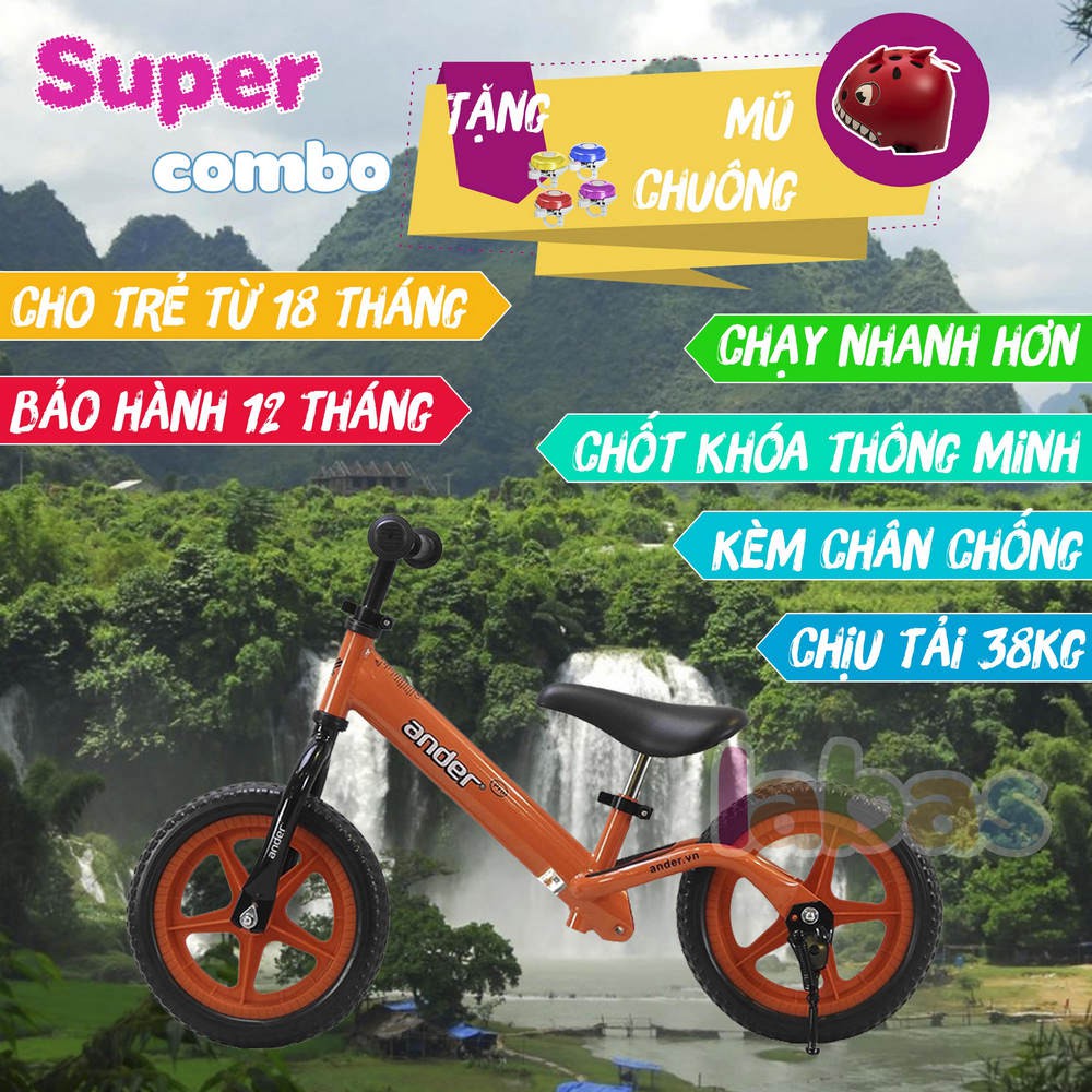️[Khách chỉ mua xe không kèm combo vui lòng inbox shop nhận mã giảm giá sốc] --------------------------------------------------- XE THĂNG BẰNG ANDER - PRO!!!!! - Là bản nâng cấp của phiên bản Basic, được nâng cấp những vị trí quan trọng nhất trên xe: + Bánh xe sử dụng vòng trục bi bạc đạn (Basic sử dụng vòng trục bạc không đạn). + Khóa nâng cao yên và tay lái là khóa thông minh (đóng mở không cần thêm dụng vụ hỗ trợ - chốt lục giác - như mẫu basic) - Xe có 4 màu: đỏ cam, vàng, xanh lơ, xanh lá. - Nó không phải là một món đồ chơi, nó là người bạn đồng hành gắn liền với tuổi thơ của bé (Dùng cho bé từ 1.5 đến hết 6 tuổi). - Nó thúc đẩy sự phát triển vể thể chất, tinh thần và tính cách cho trẻ 1 cách toàn diện nhất. - Chiều cao của yên xe và tay lái có thể nâng hạ để phù hợp với từng giai đoan phát triển của trẻ từ 18 tháng đến hết 6 tuổi. (Với chiều cao ở vị trí thấp nhất lá 27cm, bé 16m đã ngồi và chạm chân thoải mái xuống đất). ------------------------------- - Bảo hành 12 tháng. Đổi mới trong 07 ngày nếu có lỗi từ nhà sản xuất. - Hàng có sẵn ngập kho, bạn không phải chờ đợi, không phải lấy màu không ưng ý. ?SHIPCOD toàn quốc, nhận hàng và kiểm tra hàng trước khi thanh toán #xe_thăng_bằng_cho_bé #xe_thăng_bằng_ander #xe_chòi_chân