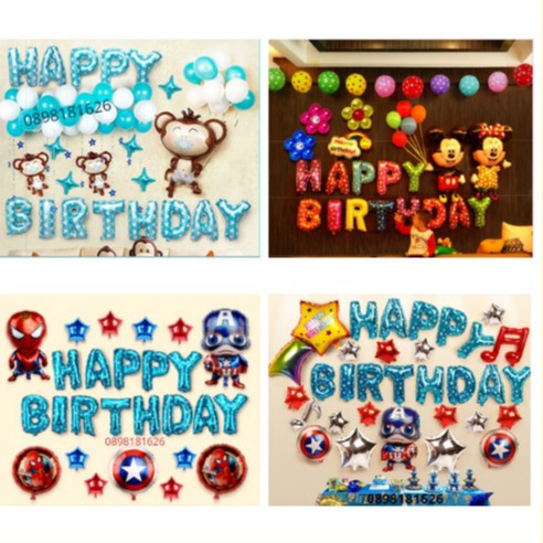 ----Set 13:Combo sinh nhật Khỉ Bảo Bảo màu xanh HPBD màu xanh Khỉ bảo bảo nhỏ x 2 Khỉ bảo bảo to x 1 Ngôi sao 4 cánh xanh 5in x 5 Dây ruy băng x 1 Ngôi sao xanh lấp lánh x 11 Bóng bay xanh trắng mỗi loại x 20 ----Set 14:Combo Một Gia Đình Hạnh Phúc HPBD 7 sắc ngôi sao trái tim Bóng bay hoa mặt trời x 2 Cô dâu chú rể em bé mỗi loại x 1 Bóng bay bông hoa x 6 ----Set 15:Combo Mickey vui nhộn HPBD 7 sắc ngôi sao trái tim Bóng bay chấm bi nhiều màu x 10 Bánh sinh nhật 3 tầng cỡ lớn x 1 Ngôi sao 5 cánh nhiều màu x 5 (2đỏ-3vàng) 10in Cặp đôi tình yêu Mickey x 1 bé Bóng bay kẹo mút nhiều màu x 5 ----Set 16:Combo Mickey Đi Dạo Vui Vẻ HPBD 7 sắc ngôi sao trái tim Bóng bay chấm bi nhiều màu x 20 Bông hoa 5 cánh nhiều màu x 3 (10in) Bóng bay cao su nhiều màu x 5 Cặp đôi tình yêu Mickey to x 1 ----Set 17:Combo Người Nhện Đội Trưởng Mỹ HPBD ngôi sao màu xanh Đội trưởng mỹ x 1 Người nhện x 1 Khiên người nhện hình tròn x 2 Khiên đội trưởng Mỹ x 1 Ngôi sao 5 cánh xanh đỏ mỗi loại x 8(10in) ----Set 18:Combo Đội Trưởng Mỹ Sao Băng Ước Nguyện HPBD ngôi sao màu xanh Nốt nhạc đơn kép mỗi loại x 1 Ngôi sao 5 cánh màu bạc 18 inch x 2 Đội Trưởng Mỹ + Sao Băng Ước Nguyện + Khiên x 2 Ngôi sao 5 cánh đỏ bạc 10 inch mỗi loại x 5 AN TOÀN cho bé thoải mái chơi đùa Cam kết giá rẻ nhất, chất lượng tốt nhất, sản phẩm giống mẫu 100% #trangtrisinhnhat #bongbaysinhnhat #bongsinhnhat #phukiensinhnhat #setbongsinhnhat #sinhnhatchobe #setsinhnhat #phukientrangtrisinhnhat #trangtrísinhnhật #sétbóngsinhnhật #bóngbaysinhnhật #setsinhnhật #phụkiệntrangtrísinhnhật"
