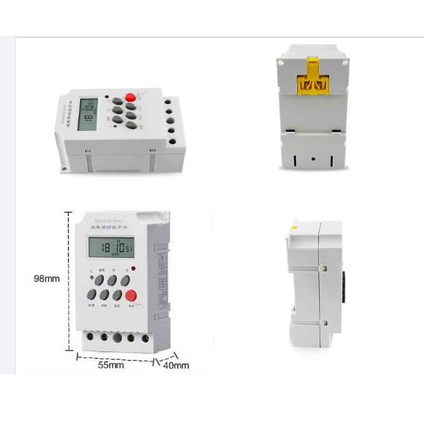 ️Điện áp làm việc: 220V AC Công suất tải: 25A, 220V AC Công tắc lắp nổi hoặc lắp thanh ray Chế độ hẹn giờ theo thứ trong tuần: Có thể chọn dãy thứ hoặc từng ngày riêng lẻ Có 17 chu kỳ on-off/ ngày; 119 chu kỳ/tuần Thời gian cài đặt tối thiểu: 1 phút Sản phẩm cần thiết để hẹn giờ tắt mở hệ thống trong nhiều lĩnh vực: + Hẹn giờ cho đài phát thanh địa phương + Hẹn giờ các thiết bị cho nhà chim én + Hẹn giờ cho đèn bảng quảng cáo, bảng hiệu.. đèn sân vườn + Hẹn giờ cho thổi khí oxy hồ cá cảnh + Hẹn giờ tưới cây, rau, hoa lan... + Hẹn giờ cho các thiết bị công nghệ như: modem, camera, báo trộm, báo động .... HƯỚNG DẪN SỬ DỤNG Bước 1: Cài thời gian thực cho thiết bị Nhấn nút C: để reset toàn bộ, một tay bấm giữ nút ( đồng hồ ), tay còn lại bấm các nút sau: D + ( Chọn thứ trong tuần theo ký hiệu ) Tiếng Anh (Mon =T hai, Tue = T ba, Wed = T tư, Thu = T năm, Fri = T sáu, Sat = T bảy, Sun = CN) H+: Chọn giờ hiện tại M+: Chọn phút hiện tại Bước 2: Lập trình thời gian cần tắt/ mở thiết bị Chọn thời gian cần mở thiết bị: Bấm nút P: màn hình hiện ra 1ON lúc này tiếp tục bấm các nút chọn ngày (D+), giờ (H+), phút (M+), Bấm liên tục cho đến khi đúng ngày, giờ, phút mình cần mở thiết bị, kết thúc bấm tiếp biểu tượng hình đồng hồ. Chọn thời gian cần tắt thiết bị: Sau khi cài đặt xong thời gian mở thiết bị và bấm tiếp nút P thì màn hình tiếp tục hiện lên 1OFF, Tiếp theo là bấm các nút chọn ngày (D+), giờ (H+) phút (M+), bấm liên tục tương tự như trên và kết thúc bằng nút P (nếu muốn lập trình lần 2…thì tiếp tục làm tương tự như vậy. Phìm Manual màu đỏ: sử dụng phím này để chuyển sang chế độ ON/ AUTO/ OFF. sp được bh 3 tháng