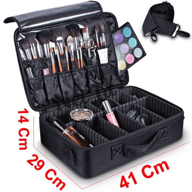 ️CỐP VALI 3 LỚP ĐỰNG ĐỒ MỸ PHẨM, NAIL, ĐỒ PHUN XĂM .. - Kích thước: 41x29x14 cm - Màu sắc: Đen, hồng - Đây là loại cốp rất tiện lợi và cơ động. Hầu hết các loại cốp đựng đồ trang điểm trên thị trường đều có kích thước khá nhỏ không đáp ứng được nhu cầu đựng nhiều mỹ phẩm, đồ trang điểm của bạn khi bạn cần dùng. Không những thế, với những loại cốp mỹ phẩm to thì thường khá bất tiện trong việc di chuyển. Cốp trang điểm dạng vali này sẽ mang lại cho bạn cả hai điều tuyệt vời đó - đựng được nhiều mỹ phẩm, nhẹ nhàng và dễ di chuyển. - Có thể coi đây là chiếc cốp hay một chiếc túi đựng đồ trang điểm đều hợp lý vì thiết kế giống như một chiếc vali thu nhỏ tiện dụng mang theo và di chuyển mà lại có rất nhiều ngăn nhỏ để đựng đồ. - Cốp được làm từ chất liệu vải dù chắn chắn, bề bỉ, chống thấm nước. Cốp đc chia làm hai ngăn - một ngăn to và một ngăn bé với nhiều ngăn phụ nhỏ giúp bạn có thể phân loại và sắp xếp các món đồ của mình một cách ngăn nắp và tiện lấy khi cần sử dụng. Các ngăn có thể tháo rời và lắp theo ý muốn. Có ngăn để máy móc thiết bị nhỏ như: máy uốn, máy là, máy dập xù.. - Bên dưới nắp đậy có rất nhiều vị trí gài để bạn có thể tận dụng và đựng các loại mỹ phẩm hay đồ trang điểm tiện ích như bút kẻ mắt, mascara, cọ hay các lọ chiết mỹ phẩm nhỏ gọn đều hợp lí.