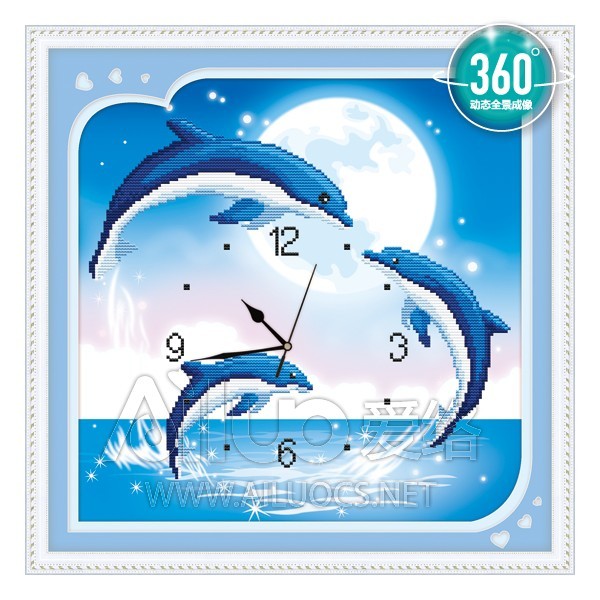 (ĐÃ ĐÍNH) Tranh đính đá thành phẩm ĐỒNG HỒ CÁ HEO 50x50cm AH71455