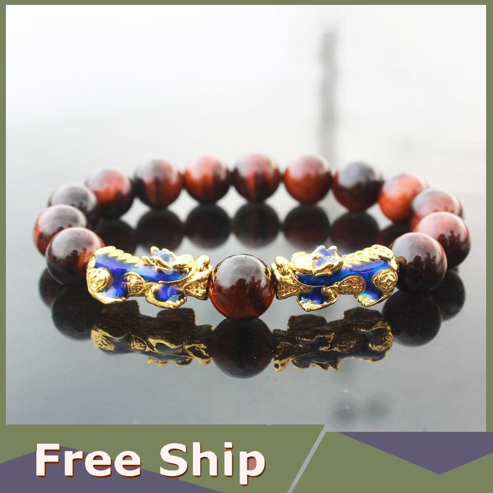 [Đặc Biệt] Vòng Tay Song Hưu Vạn Sắc Hút Tài Lộc Đá Mắt Hổ Đỏ Nâu Cao Cấp