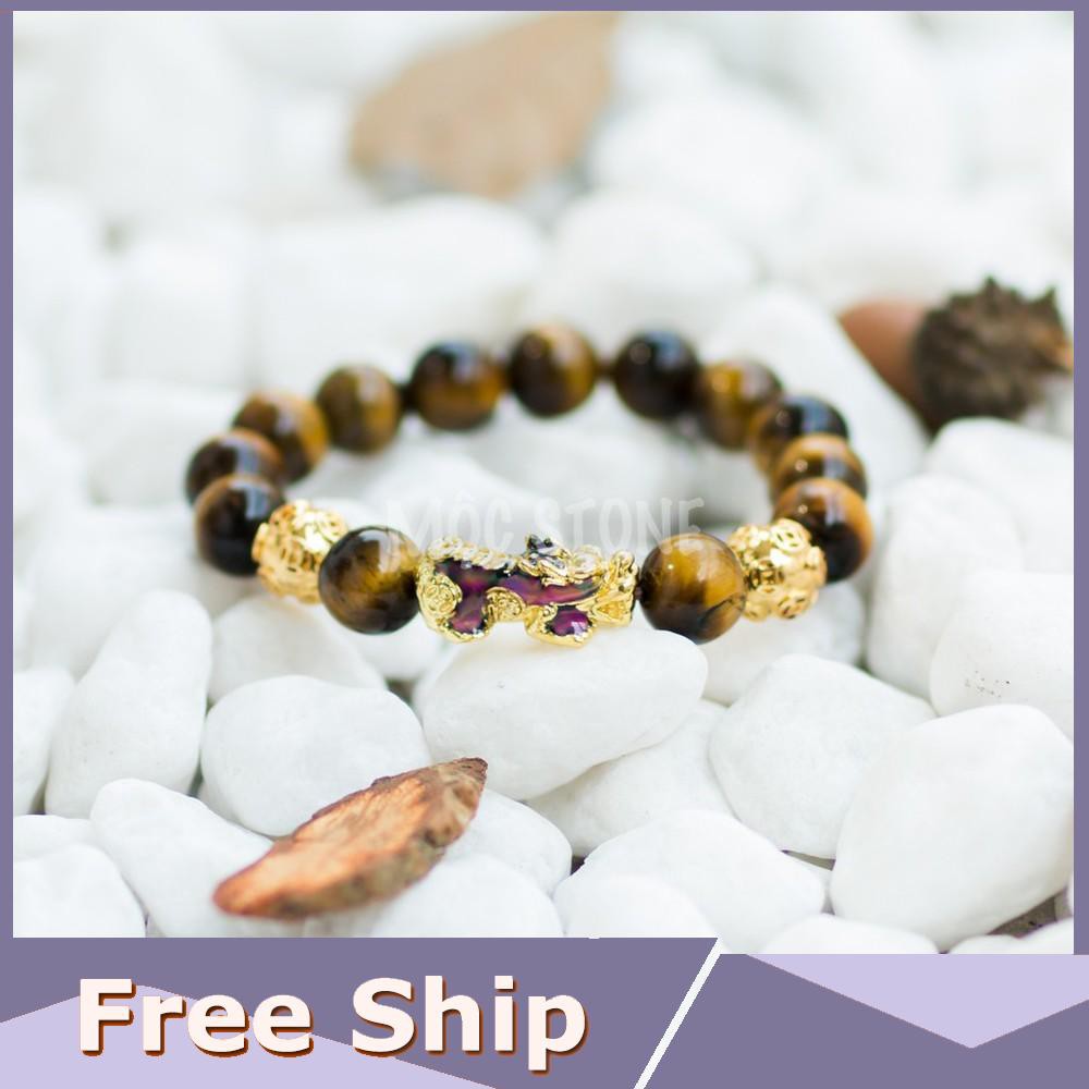 [Đặc Biệt] Vòng Tay Song Hưu Vạn Sắc Hút Tài Lộc Đá Mắt Hổ Vàng Nâu