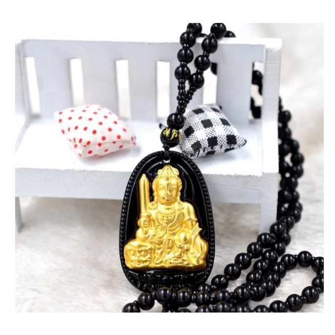 ️Màu: đen vàng Chất liệu: Đá Obsidian thủy tinh núi lửa kích thước : 50mm*32mm*12mm Ý nghĩa: Bảo hộ bình an, mang lại may mắn, hóa giải điềm xui Văn Thù Bồ Tát (hay còn gọi là Văn Thù Sư Lợi, là biểu tượng của sự thông minh, trí tuệ sáng. Nhiệm vụ của ngài là truyền bá Phật Pháp đên với tất cả chúng sinh. Hình tượng của ngài trong kinh phật là vị Phật có nét mặt tinh anh, thông thái. Ngài cưỡi trên nghê hoặc sư tử, trên tay cầm một thanh kiếm để trừ yêu diệt tà mang lại may mắn, bình an cho chúng sinh. Mang hình tượng Văn Thù Bồ Tát bên mình sẽ giúp mang lại trí tuệ tinh thông, sức mạnh tâm trí, cầu nguyện hằng ngày sẽ giúp công việc, học hành, thi cử của bạn được suôn sẻ, thành công. Văn Thù Bồ Tát là vị phật bản mệnh cho người tuổi Mão