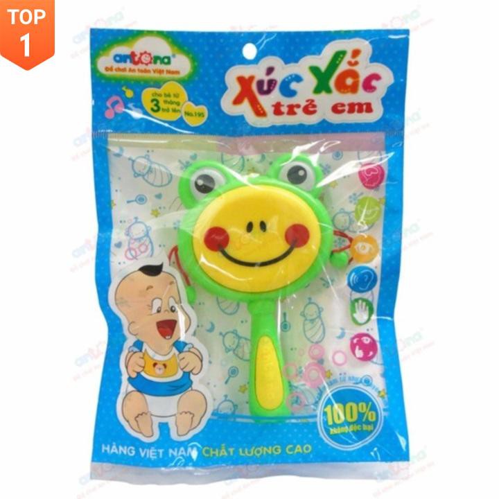 ️Chi tiết sản phẩm ĐẶC ĐIỂM NỔI BẬT + Sản phẩm Xúc xắc trống của Công ty Đồ Chơi An Toàn Việt Nam được làm từ 100% nhựa nguyên sinh, đảm bảo tuyệt đối an toàn cho bé khi vui chơi, đặc biệt là khi bé cầm, nắm và gặm sản phẩm. + Với thiết kế mới rất độc đáo, xúc xắc trống có nhiều mẫu mã và hình dáng ngộ nghĩnh khác nhau như hình con ếch, hình con hổ và hình con gấu. + Các chi tiết được thiết kế không có ba via, các cạnh sắc đều được vê tròn, đảm bảo an toàn cho trẻ khi sử dụng. + Màu sắc đa dạng, phong phú và rất bắt mắt với trẻ nhỏ. + Hình dáng sản phẩm rất đáng yêu, ngộ nghĩnh và gần gũi với trẻ nhỏ. + Âm thanh có độ lớn vừa phải, phù hợp với thính giác của trẻ. + Sản phẩm gọn, xinh xắn, vừa với tay cầm của trẻ. LỢI ÍCH MANG LẠI + Bé tập nhận biết màu sắc: Sản phẩm có rất nhiều màu sắc sinh động, bắt mắt, giúp bé tập nhận biết các màu sắc khác nhau. + Bé phát triển khả năng cầm, nắm đồ vật: Bố mẹ sẽ cho bé chơi bằng cách dạy bé tập cầm, nắm, và lắc xúc xắc. + Bé tăng cường khả năng vận động: Xúc xắc sẽ chỉ phát ra âm thanh khi được chạm vào. Nếu muốn nghe âm thanh của đồ chơi, trẻ cần phải chạm được vào xúc xắc hoặc cầm và lắc nhẹ. Điều này sẽ giúp bé phát triển hoàn thiện hơn trong những vận động đơn giản. Sản xuất tại : Việt Nam Hãng sản xuất: Antona Kích thước: 18x5x3cm #xucxacchobe #xucxac #xucxactaycam #xucxacantona #xucxachangvietnam #dochoithongminh #luclac #dochoichotresosinh #dochoiembe #dochoi