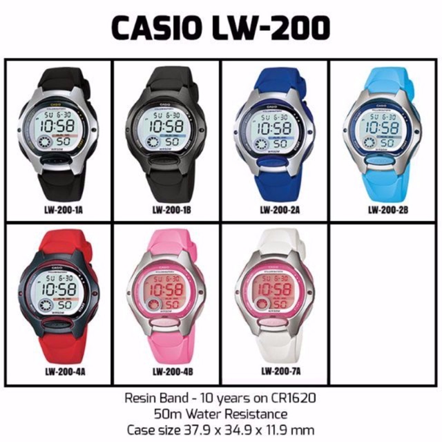 ️Shop giới thiệu dòng đồng hồ mới dành cho các bé tiểu học đến trung học. Tết rồi, sắm đồng hồ mới cho con siêu bền, hàng chính hãng, chống nước 50m, pin trâu 10 năm. Mã: Casio Lw200 Bảo hành 1 năm ?Giá tuỳ theo màu dây giao động tầm 550k ???? Các tính năng • Tuổi thọ pin 10 năm • Thiết kế vỏ xinh xắn, màn hình LCD dễ đọc • Mặt kính hình cầu • Khả năng chống nước ở độ sâu 50 mét • Đèn LED cực tím Đặc điểm kỹ thuật Vật liệu vỏ / gờ: Nhựa Dây đeo bằng nhựa Mặt kính nhựa / Mặt kính hình cầu Khả năng chống nước ở độ sâu 50 mét Đèn LED cực tím Phát sáng sau Giờ kép Đồng hồ bấm giờ 1/100 giây Khả năng đo: 23:59'59,99'' Chế độ đo: Thời gian đã trôi qua, ngắt giờ, thời gian về đích thứ nhất-thứ hai Báo giờ hàng ngày Tín hiệu thời gian hàng giờ Lịch tự động (đến năm 2099) Định dạng giờ 12/24 Giờ hiện hành thông thường: Giờ, phút, giây, chiều, tháng, ngày, thứ Độ chính xác: ±20 giây một tháng Tuổi thọ pin xấp xỉ: 10 năm với pin CR1620