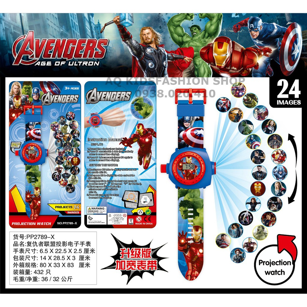 ️Đồng hồ trẻ em chiếu hình cho bé trai và bé gái, mặt đồng có nút bấm chỉnh giờ và có nút bấm chiếu hình bên hông mặt đồng hồ và kính tiêu cự giúp chỉnh hình rỏ thêm sắc nét. Sản phẩm làm bằng nhựa an toàn mô phỏng theo nhân vật Mavel-Công Chúa-Phim hoạt hình-Disney. *Món đồ chơi mới luôn mang đến cho trẻ sự phấn khích và hào hứng. *Đồng hồ đeo trên tay giúp cho bé yêu đeo thêm xinh xắn, còn vừa là món đồ chơi giúp bé rèn luyện thêm trí thông minh và khám phá. *Có nhìu hình nhân vật các bé yêu thích, màu sắc đa dạng tha hồ chọn lựa, có chức năng đồng giờ. *Chất liệu nhựa cao cấp an toàn cho trẻ. *Sản phẩm bên ngoài rất đáng yêu và ngầu hơn cả hình. Đồng hồ hoạt hình là sự kết hợp dễ thương giữa mặt đồng hồ ngộ nghĩnh với dây đeo cùng nhiều màu sắc bắt mắt phù hợp với trẻ em, vừa có tác dụng xem giờ và là phụ kiện dành cho bé.Sản phẩm dây được làm từ nhựa mềm có khả năng uốn cong tùy ý.Màu sắc đa dạng, thiết kế ngộ nghĩnh, ngoài chức năng xem giờ, đồng hồ còn có thể chiếu nhiều hình hoạt hình trong bóng tối. Dễ kết hợp với nhiều loại trang phục khác nhau của bé.Có nhiều mẫu dành cho bé trai và bé gái.Là quà tặng ý nghĩa dành cho bé yêu nhà bạn. Kích thước: 24*14*3 cm Phù hợp cho bé từ 3-10 tuổi. LH: 0938020410 (ZALO, VIBER) XIN CẢM ƠN CÁC MẸ ĐÃ ỦNG HỘ SHOP! QUÝ KHÁCH CÓ THỂ THAM KHẢO THÊM SẢN PHẨM CỦA SHOP #dongho #treem #chieuhinh l#donghochobegai #donghotreem #donghochieuhinh #donghochobetrai #donghogiare #sieunhan #sieuanhhung #congchua #hoathinh