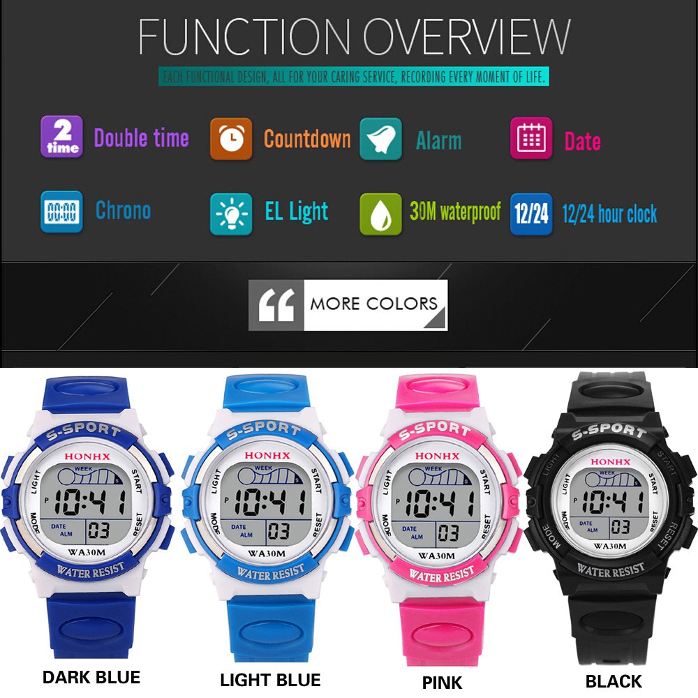️Waterproof Children Boy Digital LED Quartz Alarm Date Sports Wrist Watch Watch property: Movement: Digital Style: Sport Surface Material: Acrylic Dial Material: Acrylic Display: Digital Strap Material: Silicone Features: 100% Brand new High Quality Fashion Sports style Life Waterproof The whole point timekeeping Alarm function Date and Time Stopwatch timing Luminous display Long-life battery Specification: Dial diameter: 37mm Case Thickness: 15.36mm Strap width: 2.5mm Strap Thickness: 2mm Watch NW: 35g Full length: 23.6cm Color: Black Package Content: 1 x Sports Watch