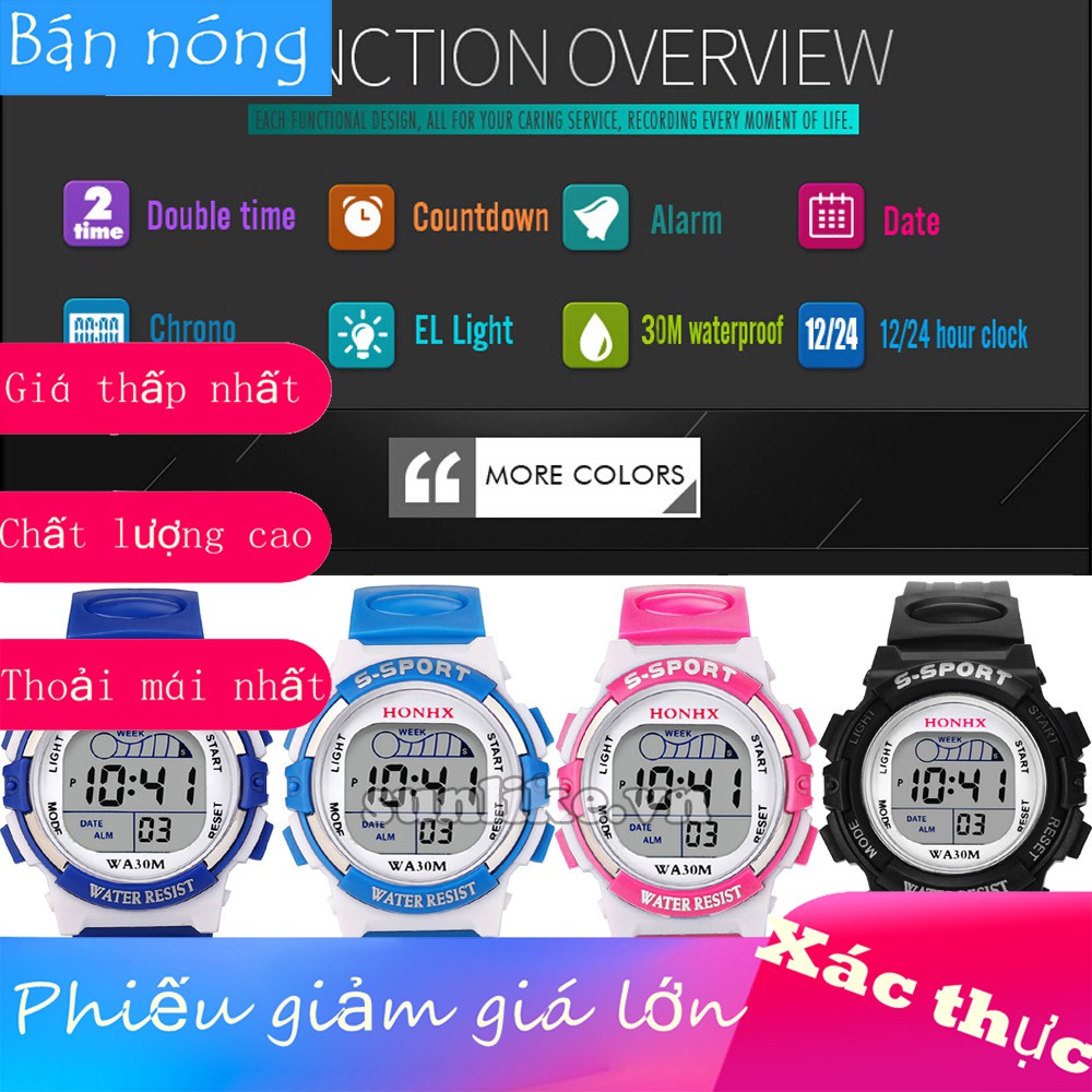 ️Thời gian giao hàng dự kiến cho sản phẩm này là từ 7-9 ngày Đồng hồ đeo tay kỹ thuật số có đèn led chống nước cho bé trai Mô tả: Chuyển động: Kỹ thuật số Phong cách: Thể thao Chất liệu bề mặt: Acrylic Chất liệu mặt số: Acrylic Hiển thị: Kỹ thuật số Chất liệu dây đeo: Silicone Tính năng, đặc điểm: 100% hàng mới chất lượng cao Thời trang thể thao Không thấm nước Chức năng báo thức Ngày và giờ Đồng hồ bấm giờ Màn hình phát sáng Pin có tuổi thọ cao Đặc điểm kỹ thuật: Đường kính mặt số: 37mm Độ dày vỏ: 15,36mm Chiều rộng dây đeo: 2,5mm Độ dày dây đeo: 2 mm Đồng hồ NW: 35g Chiều dài đầy đủ: 23,6cm Màu sắc: Nhiều màu Gói hàng bao gồm: 1 x Đồng hồ thể thao