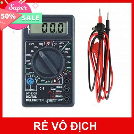 ️SẢN PHẨM CỦA SHOP BÁN RA ĐỀU ĐÃ ĐƯỢC KIỂM TRA TRƯỚC KHI GIAO CHO KHÁCH HÀNG. Chuyên cung cấp Dụng cụ - thiết bị gia đình số lượng lớn. Đồng hồ vạn năng A830B là sản phẩm không thể thiếu cho kỹ thuật viện điện, điện tử, thợ lắp đặt camera, ô tô.... Sản phẩm A830B được sản xuất dựa trên các tiêu chuẩn, cho thông số hiện thị đo chính xác. Sản phẩm được làm bằng nhựa ABS cho cảm giác chắn chắn và bền. Màn hình hiện thị LCD Giá trị hiển thị tối đa 1999 Low Voltage biểu tượng hiển thị · Quá tải · Tắt đo · backlit hiển thị ---------------------- --------------------------------- [chức năng] ------- [phạm vi] ---- --- [chính xác] điện áp DC: 200mV-600V [± (0,5% + 2dgt)] AC điện áp: 200V-750V [± (1.2% + 8dgt)] DC hiện tại: 2mA-10A [± (1.0% + 2dgt )] - kháng: 200Ω-2MΩ [± (1.0% + 2dgt)] diode:cho thấy áp lực giảm xấp xỉ triode: có đo liên tục: có dữ liệu Hold: có nguồn cung cấp điện: 6F22 loại pin 9V hiển thị tối đa: 1999 hình kích thước: 140 × 69 × 35mm - trọng lượng: 150g