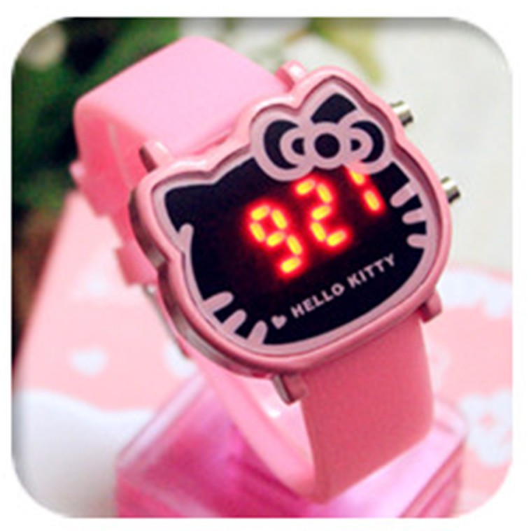 ️Đồng hồ Helo Kitty, đèn LED đeo tay cho bé gái, phong cách Hàn Quốc Mô tả sản phẩm Đồng hồ được thiết kế đẹp, đèn LED, phong cách Hàn Quốc, hình mèo Kitty ngộ nghĩnh đáng yêu, kiểu dáng thời trang đem lại sự nhẹ nhàng nữ tính cho trẻ đồng thời thể hiện cá tính của bé. Sản phẩm được thiết kế chống nước. Dây bằng nhựa siêu bền, chống nước nên rất bền và phù hợp với lứa tuổi học trò Thông số kỹ thuật Model: TG2001L Hãng: HELLO KITTY Kiểu máy: Hiện số Chức năng: Hiển thị Giờ, ngày, tháng Dành cho: Trẻ em 5 tuổi trở lên. Màu sắc: Màu Hồng đậm, Hồng nhạt, Trắng Kích thước mặt: Ø40mm Dày 8mm Dài 230mm Chất liệu: Nhựa cao cấp Trọng lượng: 34.5g Khả năng chịu nước: Chống nước 30m Sản xuất tại: Trung Quốc Vyuyu