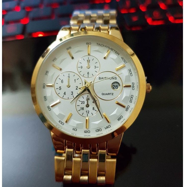 ️THÔNG TIN SẢN PHẨM - Tình trạng: Mới - Nguồn gốc: Hàng công ty - Kích thước mặt đồng hồ: 40mm - Kích thước dây đồng hồ: 20mm - Chống nước: Thấp nhất 3ATM( Đi mưa và rửa tay thoải mái) - Bảo hành: 6 tháng - Loại: Dùng kim quay hiển thị - Chất liệu mặt : Kinh cao cấp chống xước - Chất liệu vỏ: Thép không gỉ cao cấp - Năng lượng sử dụng; Pin - Mặt Trắng ------------------------------------------------ GỢI Ý SỬ DỤNG VÀ BẢO DƯỠNG Nên tránh: - Va chạm và tiếp xúc với chất ăn mòn, nhiệt độ cao hoặc từ trường mạnh. - Sử dụng bất kì dung môi, chất làm sạch, chất tẩy công nghiệp, chất dính, sơn hoặc các chất xịt mỹ phẩm. - Đeo đồng hồ cùng các vòng đeo tay vì dễ tạo vết xước hay làm hỏng mặt đồng hồ. - Chỉnh nút chỉnh giờ khi đồng hồ bị ướt. - Để đồng hồ nơi nhiệt độ thay đổi đột ngột. - Sử dụng, nhấn các nút hoặc cài đặt ở dưới nước. Nên làm: - Làm sạch đồng hồ theo định kỳ vải mềm hơi ẩm để gia tăng tuổi thọ đồng hồ. - Nếu xuất hiện hơi nước ngưng tụ, cần mang đồng hồ đến Trung Tâm Dịch Vụ Khách Hàng của các hãng càng nhanh càng tốt để giảm thiểu hư hỏng bên trong. - Thay pin khi đồng hồ chạy sai giờ hoặc chuyển động kim giây không đều vì rò rỉ điện do pin chết có thể gây ra hỏng hóc nghiêm trọng cho đồng hồ. - Tắt nguồn khi không được sử dụng trong thời gian dài, để kích hoạt công tắc bảo quản nguồn đặc biệt và tránh hao pin. Đây là chiếc đồng hồ hoàn hảo là món phụ kiện lý tưởng giúp bạn hoàn thiện phong cách của chính mình. -------------------------------------------------------------------------------- Sản phẩm được phân phối bởi Công ty TNHH CP BAISHUNS Đảm bảo hàng chất lượng, giống hình ảnh. Đổi trả hàng và hoàn tiền trong vòng 7 ngày. ➥ Shop ưu đãi giảm 15k cho khách mua hàng lần 2 nếu khách đánh giá 5* khi mua hàng lần 1 ➥ Tất cả đồng hồ ở shop đều có hộp và thẻ bảo hành của công ty. ➥ Tặng kèm pin( áp dụng từ ngày 01/01/2018) Thanks you!