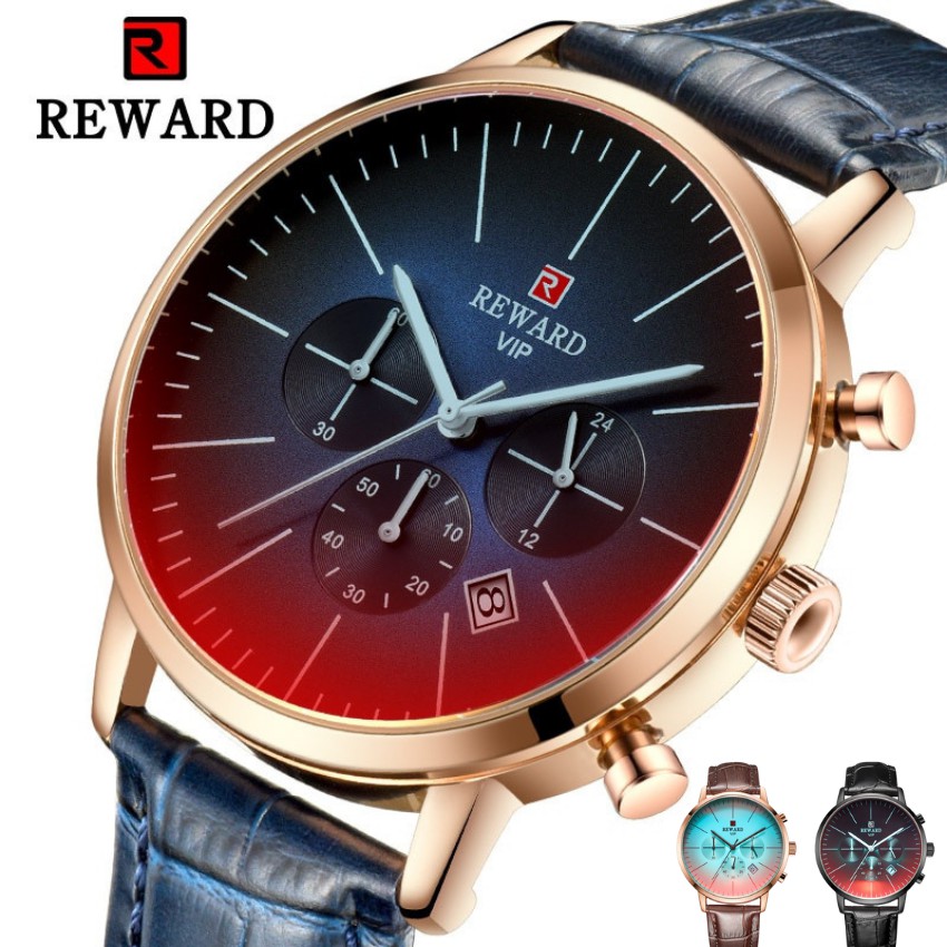 ️◈ THÔNG TIN NỔI BẬT: - Brand: REWARD - Model: KT83001 - Xuất xứ: (Công nghệ Nhật Bản, Lắp ráp tại HongKong) - Kiểu máy: Quartz, máy Nhật - Chống nước: 3 ATM (Có khả năng chống nước sinh hoạt, đi mưa, không nên bơi, ngâm nước) - Chất liệu mặt trước: kính tráng sapphire MĐ1 , chống va đập, chống trầy - Chất liệu dây đeo: Dây Da - Chất liệu: Vỏ hợp kim - Đường kính quay số: 40mm - Độ dày mặt: 12mm - Chiều dài dây đeo: 240mm - Chiều rộng dây đeo: 22mm - Trọng lượng: 101 gram - Kiểu khóa: Gấp khóa - Loại hiển thị: Kim Đồng Hồ Lịch Dạ Quang QUY ĐỊNH BẢO HÀNH ✔ Đổi trả trong 7 ngày nếu hàng bị lỗi do nhà sản xuất như là hết pin, rớt kim, hư khóa, đồng hồ không chạy. ✔ Bảo hành pin và máy trong 12 tháng. Bị bất cứ vấn đề gì bạn cứ inbox shop sẽ luôn tư vấn và hỗ trợ bạn. ◈ BỘ SẢN PHẨM BAO GỒM ✔ Đồng hồ chính hãng 100% ✔ Hộp đồng hồ cực kì đẹp, sang trọng (rất thích hợp làm quà tặng) ✔ Thẻ bảo hành, hướng dẫn sử dụng, bảo quản sản phẩm ◈ NHỮNG CAM KẾT KHI MUA HÀNG CỦA SHOP Chào mừng bạn ghé thăm cửa hàng REWARD VIET NAM: ✔ Phân phối chính thức, cam kết 100% chính hãng REWARD ✔ Cam kết về sản phẩm: Sản phẩm này 100% hàng chính hãng và giống y hệt ảnh, nếu nhận hàng khách không ưng ý hãy liên hệ với shop nhé, shop cam kết sẽ nhận lại hàng và hoàn tiền ngay. ✔ Hoàn 200% nếu phát hiện hàng giả. ✔ Bảo hành 12 tháng. (Bằng hóa đơn điện tử) ✔ Không nhập hàng loại 1 giá rẻ, loại khắc thương hiệu REWARD . (loại này rất khó phân biệt, tỷ lệ lỗi máy, nóng máy hay hao pin sau một thời gian sử dụng rất cao) ✔ Uy tín bán hàng được đặt lên hàng đầu, không kinh doanh chộp giật. ✔ Chúng tôi nói không với hàng giá rẻ kém chất lượng, shop chỉ nhập duy nhập hàng cao cấp, sản phẩm của shop có chất lượng cao. ✔ Tất cả sản phẩm đều được kỹ thuật kiểm tra đạt chuẩn trước khi giao cho khách, bạn hoàn toàn có thể yên tâm sử dụng hay làm quà tặng. Hãy mua thử sản phẩm của chúng tôi, hài lòng hãy mua tặng người thân bạn bè. Nó thật sự là một món quà đặc biệt và quý giá. THÔNG TIN THƯƠNG HIỆU Founded in 2001, the brand, REWARD, has its own extended meaning as feedback and reciprocation, with its founder Mr. Liu’s years of dedication into the watch industry and unique understanding and comprehension of the watch. Since its establishment, the REWARD brand has been adhering to the design style of elegance, simplicity and decency. REWARD watches have stood out in the forefront of fashion, for the spirit of persistent pursuing of perfection and advanced insights into vogue. The almost demanding perseverance in quality and the almost obsessive desire for individuality and freedom make the REWARD wristwatch always have a unique love for innovation, thus making the REWARD wristwatch unique and well-known in the industry.