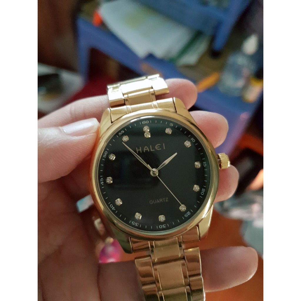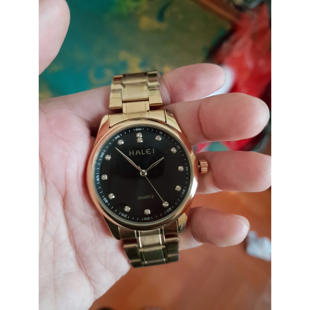 ️THÔNG TIN SẢN PHẨM - Tình trạng: Mới - Nguồn gốc: Hàng công ty - Kích thước mặt đồng hồ: 40mm - Kích thước dây đồng hồ: 20mm - Chống nước: Thấp nhất 3ATM( Đi mưa và rữa tay thoải mái) - Bảo hành: 6 tháng - Loại: Dùng kim quay hiển thị - Chất liệu mặt : Kinh cao cấp chống xước - Chất liệu vỏ: Thép không gỉ cao cấp - Năng lượng sử dụng; Pin ------------------------------------------------ GỢI Ý SỬ DỤNG VÀ BẢO DƯỠNG Nên tránh: - Va chạm và tiếp xúc với chất ăn mòn, nhiệt độ cao hoặc từ trường mạnh. - Sử dụng bất kì dung môi, chất làm sạch, chất tẩy công nghiệp, chất dính, sơn hoặc các chất xịt mỹ phẩm. - Đeo đồng hồ cùng các vòng đeo tay vì dễ tạo vết xước hay làm hỏng mặt đồng hồ. - Chỉnh nút chỉnh giờ khi đồng hồ bị ướt. - Để đồng hồ nơi nhiệt độ thay đổi đột ngột. - Sử dụng, nhấn các nút hoặc cài đặt ở dưới nước. Nên làm: - Làm sạch đồng hồ theo định kỳ vải mềm hơi ẩm để gia tăng tuổi thọ đồng hồ. - Nếu xuất hiện hơi nước ngưng tụ, cần mang đồng hồ đến Trung Tâm Dịch Vụ Khách Hàng của các hãng càng nhanh càng tốt để giảm thiểu hư hỏng bên trong. - Thay pin khi đồng hồ chạy sai giờ hoặc chuyển động kim giây không đều vì rò rỉ điện do pin chết có thể gây ra hỏng hóc nghiêm trọng cho đồng hồ. - Tắt nguồn khi không được sử dụng trong thời gian dài, để kích hoạt công tắc bảo quản nguồn đặc biệt và tránh hao pin. Đây là chiếc đồng hồ hoàn hảo là món phụ kiện lý tưởng giúp bạn hoàn thiện phong cách của chính mình. -------------------------------------------------------------------------------- Sản phẩm được phân phối bởi Công ty TNHH CP HALEI Đảm bảo hàng chất lượng, giống hình ảnh. Đổi trả hàng và hoàn tiền trong vòng 7 ngày. Thanks you! ---------------------------------------------- Xu hướng của năm:#đồnghồnam #khuyếnmãi #yêuthích #thờitrangnam #chinhhang #giárẻ #vongtay #donghocatinh #donghonu #donghochongnuoc #donghothoitrang #donghodep #donghothethao #donghogiare #donghonamdep #donghore #donghovang