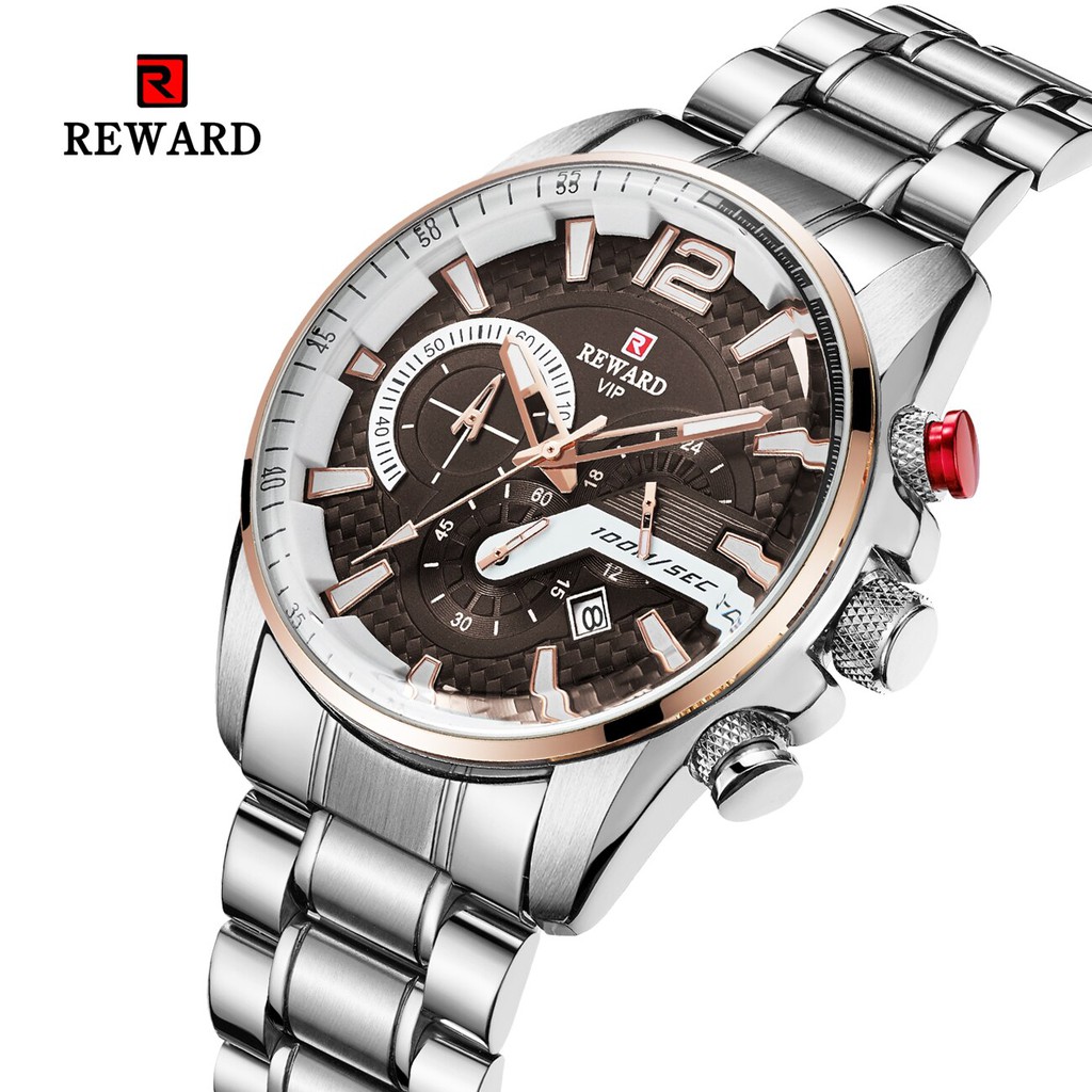 ️◈ THÔNG TIN NỔI BẬT: - Brand: REWARD - Model: KT63080 - Xuất xứ: (Công nghệ Nhật Bản, Lắp ráp tại HongKong) - Kiểu máy: Quartz, máy Nhật - Chống nước: 3 ATM (Có khả năng chống nước sinh hoạt, đi mưa, không nên bơi, ngâm nước) - Chất liệu mặt trước: kính tráng sapphire MĐ1 , chống va đập, chống trầy - Chất liệu dây đeo: Thép không gỉ Dây - Chất liệu: Vỏ hợp kim - Đường kính quay số: 44mm - Độ dày mặt: 13mm - Chiều dài dây đeo: 230mm - Chiều rộng dây đeo: 24mm - Trọng lượng: 118 gram - Kiểu khóa: Gấp khóa - Loại hiển thị: Kim Đồng Hồ Lịch Dạ Quang QUY ĐỊNH BẢO HÀNH ✔ Đổi trả trong 7 ngày nếu hàng bị lỗi do nhà sản xuất như là hết pin, rớt kim, hư khóa, đồng hồ không chạy. ✔ Bảo hành pin và máy trong 12 tháng. Bị bất cứ vấn đề gì bạn cứ inbox shop sẽ luôn tư vấn và hỗ trợ bạn. ◈ BỘ SẢN PHẨM BAO GỒM ✔ Đồng hồ chính hãng 100% ✔ Hộp đồng hồ cực kì đẹp, sang trọng (rất thích hợp làm quà tặng) ✔ Thẻ bảo hành, hướng dẫn sử dụng, bảo quản sản phẩm ◈ NHỮNG CAM KẾT KHI MUA HÀNG CỦA SHOP Chào mừng bạn ghé thăm cửa hàng REWARD VIET NAM: ✔ Phân phối chính thức, cam kết 100% chính hãng REWARD ✔ Cam kết về sản phẩm: Sản phẩm này 100% hàng chính hãng và giống y hệt ảnh, nếu nhận hàng khách không ưng ý hãy liên hệ với shop nhé, shop cam kết sẽ nhận lại hàng và hoàn tiền ngay. ✔ Hoàn 200% nếu phát hiện hàng giả. ✔ Bảo hành 12 tháng. (Bằng hóa đơn điện tử) ✔ Không nhập hàng loại 1 giá rẻ, loại khắc thương hiệu REWARD . (loại này rất khó phân biệt, tỷ lệ lỗi máy, nóng máy hay hao pin sau một thời gian sử dụng rất cao) ✔ Uy tín bán hàng được đặt lên hàng đầu, không kinh doanh chộp giật. ✔ Chúng tôi nói không với hàng giá rẻ kém chất lượng, shop chỉ nhập duy nhập hàng cao cấp, sản phẩm của shop có chất lượng cao. ✔ Tất cả sản phẩm đều được kỹ thuật kiểm tra đạt chuẩn trước khi giao cho khách, bạn hoàn toàn có thể yên tâm sử dụng hay làm quà tặng. Hãy mua thử sản phẩm của chúng tôi, hài lòng hãy mua tặng người thân bạn bè. Nó thật sự là một món quà đặc biệt và quý giá. THÔNG TIN THƯƠNG HIỆU Founded in 2001, the brand, REWARD, has its own extended meaning as feedback and reciprocation, with its founder Mr. Liu’s years of dedication into the watch industry and unique understanding and comprehension of the watch. Since its establishment, the REWARD brand has been adhering to the design style of elegance, simplicity and decency. REWARD watches have stood out in the forefront of fashion, for the spirit of persistent pursuing of perfection and advanced insights into vogue. The almost demanding perseverance in quality and the almost obsessive desire for individuality and freedom make the REWARD wristwatch always have a unique love for innovation, thus making the REWARD wristwatch unique and well-known in the industry.