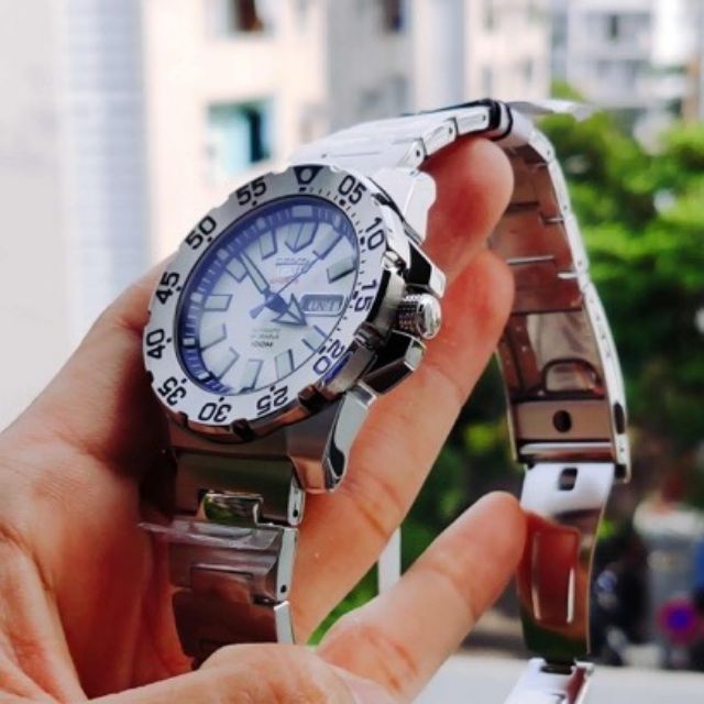 ️Seiko Baby Monster Automatic SRP481K1 - Máy automatic 4R36A, cót tay, hacking stop, 24 chân kính, 21600 vph, 40h tích cót - Dial xanh trắng, dạ quang siêu sáng, mạnh mẽ - Kính hardlex, đáy sau lộ máy - Niềng bezel xoay tính giờ cá tính - size 43. WR 100M Retail $395. Fullbox tag chính hãng, bao test mọi mặt trận ➥ Phụ kiện: fullbox, tag ➥ Hàng ở ngoài đẹp hơn hình hen. ➥ Cam đoan ➥ chính hãng. No fake. Bao test -------------- THÔNG SỐ KỸ THUẬT ➥ Thương hiệu: SEIKO 5 ➥ Model Number: SRP481K1 ➥ Kiểu mặt: tròn ➥ Khóa: Khóa bấm ➥ Mặt hiển thị: Analog ➥ Chất liệu mặt: Mineral ➥ Kích thước mặt: 44mm ➥ Độ dày case: 13mm ➥ Chất liệu viền ngoài mặt: Thép không gỉ ➥ Chất liệu dây: Thép không gỉ ➥ Độ rộng dây: 22mm ➥ Độ dài dây: Tiêu chuẩn vòng tay nam ➥ Màu dây: Silver ➥ Màu mặt: Silver ➥ Kiểu máy: Automatic ➥ Chịu nước: 10ATM ➥ Bảo hành: 12 tháng ➥ Xuất xứ: Nhật -------------- ➥ Vì là hàng on sale, số lượng ít nên vui lòng inbox để check kho, hãy sms/viber/zalo/inbox: 0938791001 (ms.Tiên) TINGO SHOP CAM KẾT ➥ Tất cả sản phẩm đều là CHÍNH HÃNG 100%, bao check trên mọi phương diện. ➥ Hình ảnh CHÂN THỰC, sản phẩm Y HÌNH (Màu sắc có thể chênh lệch đậm nhạt đôi chút do chụp bằng ĐT và ánh sáng khi chụp) #tingoshop #donghonu #donghothoitrang #donghoxachtay #donghochinhhang #donghocaocap #donghonam #donghosale #donghohanghieu#donghonamchinhhang#seiko5