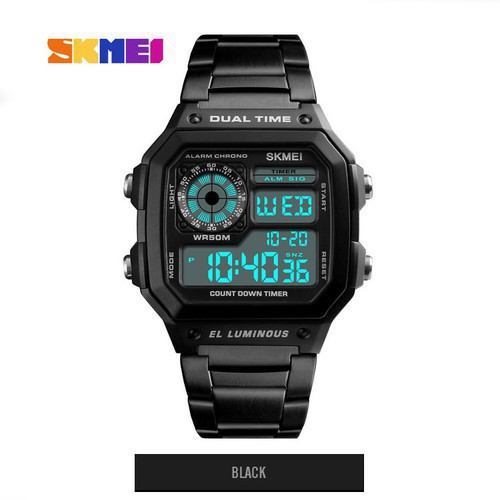 ️Đồng Hồ Điện Tử Skmei điện tử là mẫu đồng hồ thể thao mang hơi hướng cổ điển với mặt số hình vuông có kích thước vừa phải, phù hợp với mọi đối tượng người dùng. Màn hình điện tử hiển thị sắc nét với các vùng chức năng được sắp xếp thông minh, hiện đại. Skmei P335 được tích hợp đầy đủ các chức năng thông dụng hiện nay, chiếc đồng hồ này hứa hẹn sẽ là món phụ kiện không thể thiếu để đồng hành cùng bạn trong sinh hoạt hàng ngày cũng như trong các hoạt động thể thao. Kính resin chống chịu va đập tốt, kèm miếng dán màn hình chống trầy xước Dây thép không gỉ, khung titan có độ hoàn thiện cao. Sử dụng cộng nghệ sơn mạ PVD không phai màu, bền đẹp theo thời gian Các chức năng: Full lịch thứ, ngày, tháng, năm; bộ bấm giờ, đếm ngược, báo thức, giờ kép dual time, led… Khả năng chống nước vượt trội 5ATM: rửa tay, đi mưa, tắm,… (không bấm nút khi đồng hồ bị ướt) Được sản xuất theo quy trình tiên tiến, máy và pin được nhập kh���u từ Nhật mang đến sự bền bỉ và chính xác theo thời gian Cách chỉnh giờ, dual time, báo thức: Ở chế độ tương ứng, ấn và giữ nút Reset để vào chế độ điều chỉnh sau đó dùng 2 nút Start và Mode để điều chỉnh theo ý muốn. THÔNG TIN CHI TIẾT SẢN PHẨM Thương hiệu: Skmei Chính Hãng Kiểu máy: Quartz Nhật Dành cho: Nam Chất liệu vỏ: Thép không gỉ Chất liệu mặt trước: Nhựa Chất liệu dây: Thép không gỉ Mặt kính: Phẳng Kích thước mặt: 29mm - 43mm (Luôn vành không tính mấu gắn dây) Kích thước dây: 18mm Độ dày mặt: 13mm Độ dày dây: 3mm Tổng chiều dài: 230mm Số lịch: Lịch ngày / tháng điện tử Độ chịu nước: Chịu nước tốt; tránh các hoạt động bơi lội Năng lượng sử dụng: Pin chuẩn Bảo hành 6 tháng BỘ SẢN PHẨM BÁN CHUẨN GỒM - 1 Đồng hồ Skmei Chính Hãng - 1 Phiếu bảo hành #đồnghồ #đồnghồnam #đồnghồthờitrang #đồnghồgiárẻ #dongho #donghonam #donghochinhhang #giárẻ #giátốt #khuyenmai #khuyếnmãi #sale