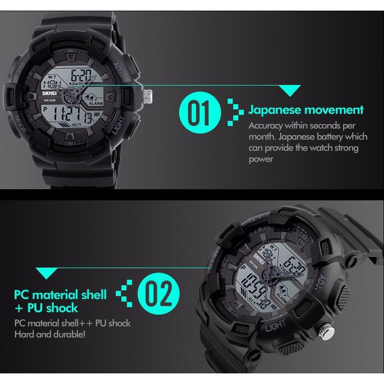 ️➥ CHÚNG TÔI CAM KẾT ✔ MẪU MÃ, CHẤT LƯỢNG sản phẩm giống như mô tả ✔ Giao hàng COD toàn quốc, KIỂM TRA trước khi thanh toán ✔ BẢO HÀNH 6 tháng ✔ Hỗ trợ ĐỔI TRẢ trong vòng 2 ngày ➥ Giới thiệu sản phẩm ĐỒNG HỒ THỂ THAO NAM ĐIỆN TỬ ĐA CHỨC NĂNG SKMEI VW017 - VEMZ WATCH ⌚️ Là sự kết hợp hài hòa giữa kiểu dáng và chất lượng, những chiếc đồng hồ đến từ thương hiệu SKMEI xứng đáng là một lựa chọn của phái mạnh. Chiếc đồng hồ SKMEI được thiết kế để dành riêng cho những chàng trai trẻ trung, năng động. Sở thiết kế mặt tròn nam tính và mạnh mẽ, các chi tiết trang trí như vạch chia giờ, kim đồng hồ... được bố trí một cách hài hòa, đạt tính thẩm mỹ cao, sản phẩm góp phần tạo nên phong cách riêng cho bạn. Hơn thế nữa với tính ứng dụng cao, bạn có thể kết hợp chiếc đồng hồ này với những bộ trang phục khác nhau để tạo nên phong cách riêng đầy cuốn hút. ➥ THÔNG SỐ KỸ THUẬT ✔ Thương hiệu: Skmei ✔ Kiểu máy: Quartz Digital ✔ Dành cho: Nam ✔ Chất liệu vỏ: Cao su cao cấp bền bỉ ✔ Chất liệu mặt trước: Kính cứng ✔ Chất liệu dây: Cao su cao cấp bền bỉ ✔ Kích thước mặt: 42mm ✔ Độ dày mặt: 12mm ✔ Chức năng: bấm giờ, hẹn giờ,... ✔ Độ chịu nước: 5ATM ✔ Năng lượng sử dụng: Pin ✔ Bảo hành: Bảo hành đồng hồ 6 tháng ➥ GỢI Ý SỬ DỤNG VÀ BẢO DƯỠNG ❌ Nên tránh: - Va chạm và tiếp xúc với chất ăn mòn, nhiệt độ cao hoặc từ trường mạnh. - Sử dụng bất kì dung môi, chất làm sạch, chất tẩy công nghiệp, chất dính, sơn hoặc các chất xịt mỹ phẩm. - Đeo đồng hồ cùng các vòng đeo tay vì dễ tạo vết xước hay làm hỏng mặt đồng hồ. - Chỉnh nút chỉnh giờ khi đồng hồ bị ướt. - Để đồng hồ nơi nhiệt độ thay đổi đột ngột. - Sử dụng, nhấn các nút hoặc cài đặt ở dưới nước. ☑ Nên làm: - Làm sạch đồng hồ theo định kỳ vải mềm hơi ẩm để gia tăng tuổi thọ đồng hồ. - Nếu xuất hiện hơi nước ngưng tụ, cần mang đồng hồ đến Trung Tâm Dịch Vụ Khách Hàng của các hãng càng nhanh càng tốt để giảm thiểu hư hỏng bên trong. - Thay pin khi đồng hồ chạy sai giờ hoặc chuyển động kim giây không đều vì rò rỉ điện do pin chết có thể gây ra hỏng hóc nghiêm trọng cho đồng hồ. - Tắt nguồn khi không được sử dụng trong thời gian dài, để kích hoạt công tắc bảo quản nguồn đặc biệt và tránh hao pin. ➥ Xem thêm sản phẩm tại: #VerkStore #đồnghồnam #donghonam #dongho #đồnghồ #donghogiare #đồnghồgiárẻ #chốngnước #đồnghồ6kim #đồnghồthểthao #đồnghồđiệntử #đồnghồcơ #automatic #donghoskmei #donghonamdep #đồnghồnamđẹp #đồnghồnữ #đồnghồthểthao #đồnghồdâyda