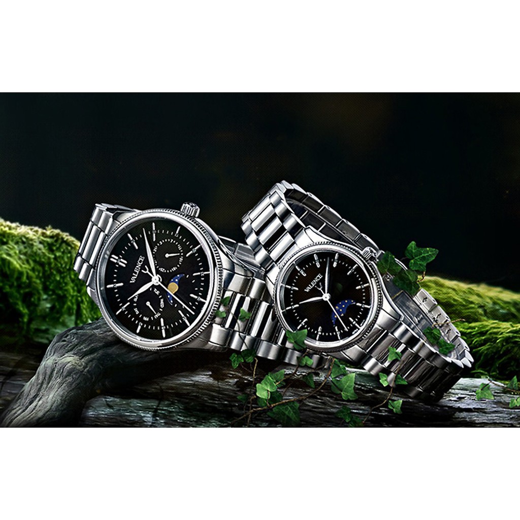 ️Thương hiệu: Valence – Hàn Quốc Mã sản phẩm: VC-068MB (Bạc Đen) Dành cho: Nam, sinh viên, doanh nhân, nhân viên văn phòng Chất liệu dây: Thép không gỉ cao cấp Chất liệu mặt kính: kính sapphire cao cấp chống trầy xước tuyệt đối Kích thước bề mặt: 3,8cm (Mặt tròn) Độ dày: 1cm Tổng độ dài của dây: 19cm Độ rộng của dây: 2cm Kiểu khóa: Khóa gài Chất liệu vỏ máy: Thép không gỉ tốt nhất hiện nay kết hợp sử dụng công nghệ phủ xi IP chân không tiên tiến cho sản phẩm luôn bóng loáng như mới, giữ màu không bị bay, phai trong thời gian sử dụng. Máy: Quartz Nhật MIYOTA 6P24 mặt trăng (Moon face) chuyển động đa dạng, đa chức năng. Chức năng khác: xem lịch thứ, ngày, xem giờ ngày đêm dễ dàng. Chống thấm nước : 3ATM ( chịu được áp lực 30M nước) Bảo hành: 24 tháng, hậu mãi 3 năm chi phí thấp sau bảo hành.