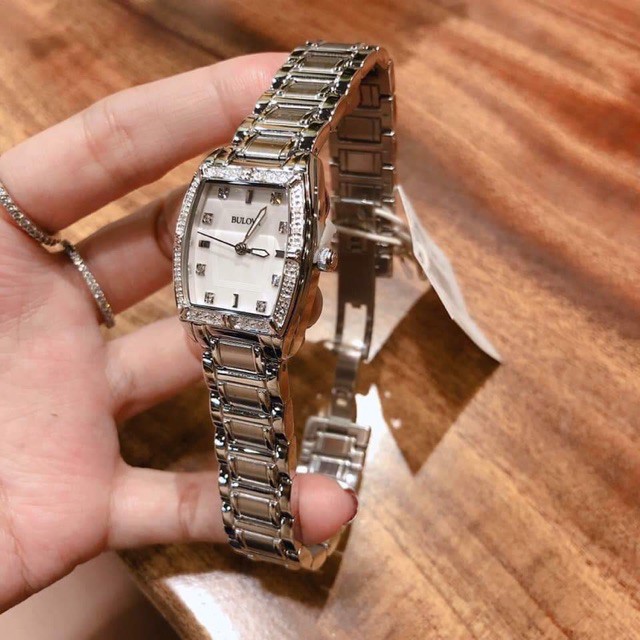️?Nếu bạn đã chán những chiếc đồng hồ tròn xoe, lựa chọn của bạn có thể là một chiếc đồng hồ tinh tế như thế này ạ❤️ ➥ Sz 24mm, mỏng 8mm ?Chống nước 30m ?Toàn bộ viền mặt và đính kim cương tại 8 múi giờ ➥ Hàng ở ngoài đẹp hơn hình hen. ➥ Cam đoan ➥ chính hãng. No fake. Full box Thông số kỹ thuật : ➥ Thương hiệu: BULOVA ➥ Model Number: 96R162 ➥ Kiểu mặt: Chữ nhật ➥ Khóa: Khóa bấm ➥ Mặt hiển thị: Analog ➥ Chất liệu mặt: Mineral ➥ Kích thước mặt: 24mm x 28mm ➥ Độ dày case: 8mm ➥ Chất liệu viền ngoài mặt: Thép không gỉ ➥ Chất liệu dây: Thép không gỉ ➥ Độ rộng dây: 14mm ➥ Độ dài dây: Tiêu chuẩn vòng tay nữ ➥ Màu dây: Silver ➥ Màu mặt: Trắng xà cừ ➥ Kiểu máy: Quartz (Nhật) ➥ Chịu nước: 3ATM (rửa tay, đi mưa thoải mái) ➥ Bảo hành: 12 tháng ➥ Xuất xứ: Mỹ -------------- Vì là hàng on sale, số lượng ít nên vui lòng inbox để check kho nhé - sms/viber/zalo: 0938791001 (ms.Tiên) #donghonu #donghothoitrang #donghoxachtay #donghochinhhang #donghocaocap #donghonam #donghosale #donghohanghieu #bulova