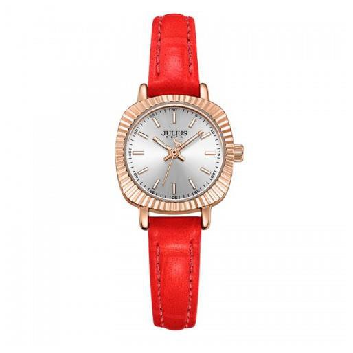 ️Thương hiệu: JULIUS Mã sản phẩm: JA-1056B (Đỏ) Dành cho: Nữ giới, yêu thích thời trang và phá cách Chất liệu dây: Dây da Genuine Leather bền bỉ Chất liệu mặt kính: Mặt kính khoáng cao cấp trong suốt rõ nét, độ cứng cao (chống va đập tốt ở mức sinh hoạt hằng ngày) Kích thước bề mặt: 2,4cm Độ dày: 0,8cm Tổng độ dài đồng hồ: 21,5cm Độ rộng của dây: 1cm Kiểu khóa: Khóa gài Chất liệu vỏ máy: Hợp kim mạ ion vàng hồng, sử dụng công nghệ mạ IP chân không tiên tiến giúp đem lại độ sáng bóng và bền màu Máy: Quartz Nhật MIYOTA 2035 (được sản xuất bởi Citizen Nhật Bản) Khả năng chịu nước: Chống thấm nước 3ATM (30m) có thể đi mưa, rửa tay, rửa mặt. Tránh tiếp xúc với môi trường hóa chất như giặt đồ, tấm gội. Bảo hành: 12 tháng, hậu mãi 3 năm chi phí thấp sau bảo hành. Đổi mới nếu bị vô nước hay hư máy do nhà sản xuất. Thay dây miễn phí 1 lần, thay pin trọn đời, mua phụ kiện giá ưu đãi khi có thẻ bảo hành Xuất xứ: Trung Quốc Hàng chính hãng. chất lượng cao.