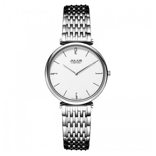 ️Thương hiệu: JULIUS - Limited Mã sản phẩm: JAL-032LA (Trắng bạc) Dành cho: Nữ giới, yêu thích thời trang và phá cách... Chất liệu dây: Dây thép không gỉ Chất liệu mặt kính: Mặt kính khoáng cao cấp trong suốt rõ nét, độ cứng cao (chống va đập tốt ở mức sinh hoạt hàng ngày) Kích thước bề mặt: 2,65cm (Mặt tròn) Độ dày: 0,65cm Tổng độ dài đồng hồ: 22cm Độ rộng của dây: 1,3cm Kiểu khóa: Nút gài Chất liệu vỏ máy: Thép không gỉ Máy: Quartz Nhật MIYOTA (sản xuất bởi Citizen Nhật Bản) Khả năng chịu nước: Chống thấm nước 3ATM (30m) có thể đi mưa, rửa tay, rửa mặt. Tránh tiếp xúc với môi trường hóa chất như giặt đồ, tấm gội. Bảo hành: 12 tháng, hậu mãi 3 năm chi phí thấp sau bảo hành. Đổi mới nếu bị vô nước hoặc lỗi do nhà sản xuất. Thay dây miễn phí 1 lần, thay pin trọn đời, mua phụ kiện giá ưu đãi khi có thẻ bảo hành Xuất xứ: Trung Quốc