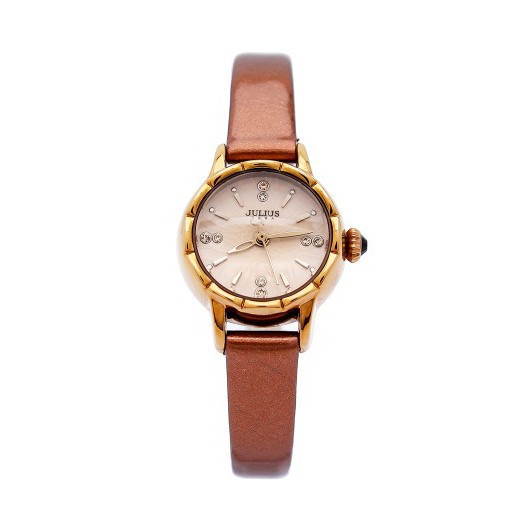 ️Thương hiệu: JULIUS Mã sản phẩm: JA-908E (Nâu) Dành cho: Nữ, sinh viên, nhân viên văn phòng, doanh nhân… Chất liệu dây: Dây da Genuine Leather bền bỉ Chất liệu mặt kính: Mặt kính khoáng cao cấp trong suốt rõ nét, độ cứng cao (chống va đập tốt ở mức sinh hoạt hàng ngày) Kích thước bề mặt: 2,35cm (Mặt tròn) Độ dày: 0,9cm Tổng độ dài đồng hồ: 21cm Độ rộng của dây: 1cm Kiểu khóa: Khóa gài Chất liệu vỏ máy: Hợp kim mạ ion vàng, sử dụng công nghệ mạ IP chân không tiên tiến giúp đem lại độ sáng bóng và bền màu Máy: Quartz Nhật MIYOTA 2035 (sản xuất bởi Citizen Nhật Bản) Khả năng chịu nước: Chống thấm nước 3ATM (30m) có thể đi mưa, rửa tay, rửa mặt. Tránh tiếp xúc với môi trường hóa chất như giặt đồ, tấm gội. Bảo hành: 12 tháng, hậu mãi 3 năm chi phí thấp sau bảo hành. Đổi mới nếu bị vô nước hoặc lỗi do nhà sản xuất. Thay dây miễn phí 1 lần, thay pin trọn đời, mua phụ kiện giá ưu đãi khi có thẻ bảo hành Xuất xứ: Trung Quốc