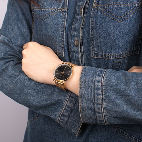 ️THÔNG SỐ KỸ THUẬT Thương hiệu: MANGOSTEEN Seoul – Hàn quốc Mã sản phẩm: MS519J (Viền vàng mặt đen) Dành cho: Nữ, sinh viên, nữ nhân viên văn phòng, doanh nhân… Chất liệu dây: Thép cao cấp không gỉ dạng dây lưới (Mesh) Chất liệu mặt kính: Kính khoáng cứng cao cấp trong suốt rõ nét, độ cứng cao Chất liệu mặt sau: Thép không gỉ khắc logo của hãng Kích thước bề mặt: 3,5cm (Mặt tròn) Độ dày: 0,7cm (Siêu mỏng) Tổng độ dài của dây: 23,5cm Độ rộng của dây: 1,5cm Chất liệu vỏ máy : Hợp kim cao cấp mạ thép không gỉ, sử dụng công nghệ mạ IPG chân không tiên tiến giúp đem lại độ sáng bóng và bền màu Máy: Nhật 100% make in Japan động cơ mạnh mẽ thời gian chuẩn xác Sản xuất tại Hàn Quốc Chống thấm nước 3ATM có thể đi mưa, rửa tay, rửa mặt. Tránh tiếp xúc với môi trường hóa chất như giặt đồ, tắm gội. Bảo hành: 24 tháng, hậu mãi 3 năm chi phí thấp sau bảo hành Sản phẩm full box chính hãng như hình Xuất xứ: Trung Quốc Hàng chính hãng.