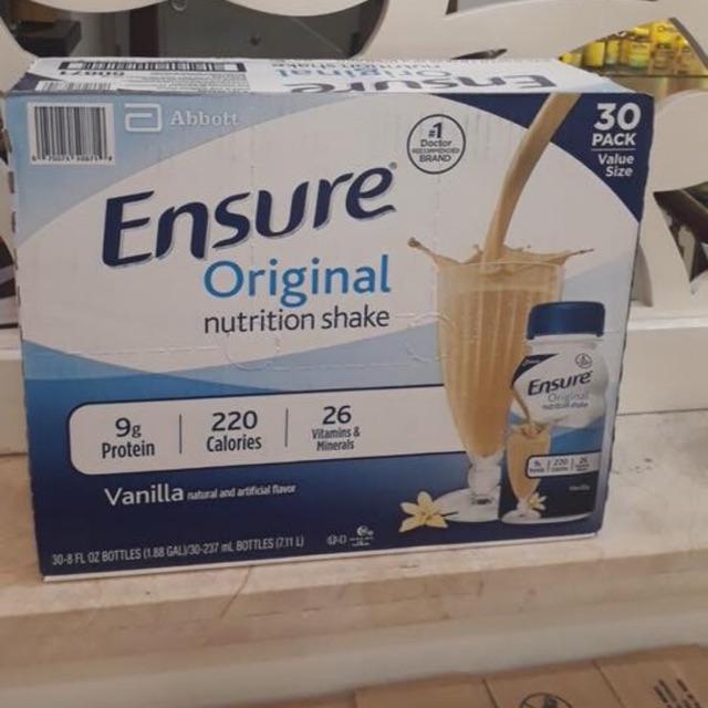 ️✈️ Xuất xứ: hàng nội địa Mỹ ?Date: tháng O5/2020 Sữa Ensure nước hương Vani được sản xuất dạng sữa nước pha sẵn thơm ngon và dễ uống, cung cấp nguồn năng lượng thiết yếu cho người lớn, người ăn uống kém, người bệnh hoặc cho người cần phục hồi nhanh. Sữa Ensure nước hương Vani cung cấp đến 26 loại vitamin và khoáng chất cần thiết, giúp bồi bổ cơ thể mau chóng. Có thể dùng sữa để bổ sung vào khẩu phần ăn khi có nhu cầu tăng thêm về năng lượng và chất đạm hoặc để duy trì tình trạng dinh dưỡng tốt. Sữa Ensure nước hương Vani 237ml Dinh dưỡng từ Sữa Ensure nước: - Giúp phục hồi và tăng cường thể chất Sữa cung cấp một nguồn dinh dưỡng đầy đủ và cân bằng, trong đó cõ đến 26 loại vitamin và khoáng chất cần thiết, giúp bồi bổ cơ thể mau chóng. Sữa thích hợp cho người lớn, người ăn uống kém, người bệnh hoặc cho người cần phục hồi nhanh. - An toàn cho sức khỏe Sữa Ensure nước hương Vani được chứng minh có chứa chất chống oxy hóa và giúp tăng cường hệ thống miễn dịch tự nhiên của cơ thể. Sữa không chứa đường Lactose gluten, an toàn cho sức khỏe. - Dạng nước tiện lợi Sữa được điều chế dạng sữa nước pha sẵn thơm ngon và dễ uống, tiện mang theo để thưởng thức ngay cả khi bạn đi chơi xa, du lịch. Bạn có thể dùng sữa để bổ sung vào khẩu phần ăn khi có nhu cầu tăng thêm về năng lượng và chất đạm hoặc để duy trì tình trạng dinh dưỡng tốt. - Sữa Ensure nước hương Vani có thể được sử dụng để bổ sung vào khẩu phần ăn khi có nhu cầu tăng thêm về năng lượng và chất đạm hoặc để duy trì tình trạng dinh dưỡng tốt. Ngoài ra Sữa Ensure nước hương Vani còn được dùng để thay thế hoàn toàn hay một phần bữa ăn để duy trì hoặc tăng cường sức khoẻ. Hướng dẫn sử dụng • Dùng trực tiếp, ngon hơn khi uống lạnh • Lưu ý: Không dùng cho người bị galactose huyết. Không dùng cho trẻ dưới 4 tuổi. Không dùng đường tiêm Bảo quản • Nơi khô ráo, thoáng mát • Chai đã mở phải để trong tủ lạnh và dùng trong vòng 24 giờ =====================================================
