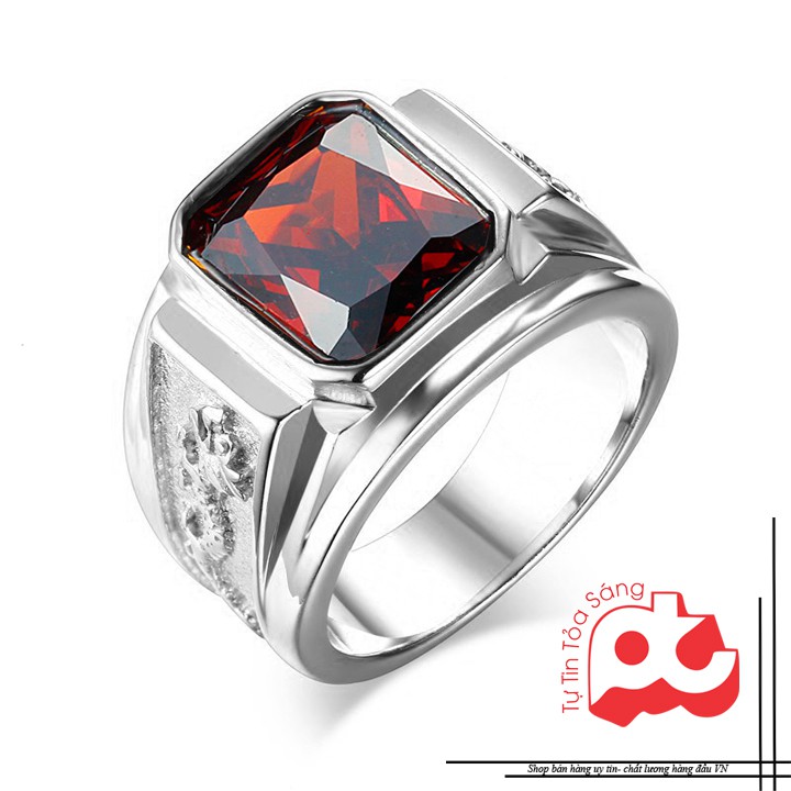 FASHIONMP nhẫn nam inox rồng trắng đá đỏ - đen- xanh 040