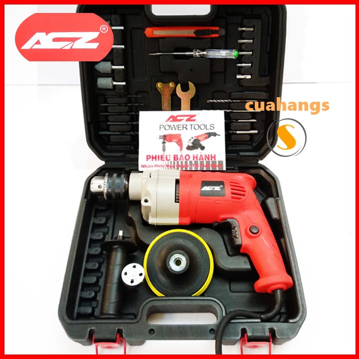 ️Máy khoan ACZ 6713 chính hãng là sản phẩm máy khoan động lực có công suất 720W mạnh mẽ Trang bị đầy đủ chức năng như Khoan 2 chế độ búa + thường, công tắc điều chỉnh tốc độ, công tắc đảo chiều. Đáp ứng rất tốt nhu cầu Khoan tường, gỗ, sắt, nhựa..... Tặng kèm hộp đựng nhựa ABS chắc chắn cùng 30 chi tiết mũi khoan, đầu mài, đầu chà nhám, bộ chuyển lưỡi cắt, bộ mũi mở ốc vít, bút thử điện, dao rọc giấy. Thông số kỹ thuật: Xuất xứ: ACZ Coporation (Malaysia) Công suất: 720W Tốc độ 3200 vòng/phút Trọng lượng 2,3kg Đầu kẹp 6-10mm. Điện áp 220V-50Hz BẢO HÀNH 12 THÁNG BẰNG PHIẾU BẢO HÀNH