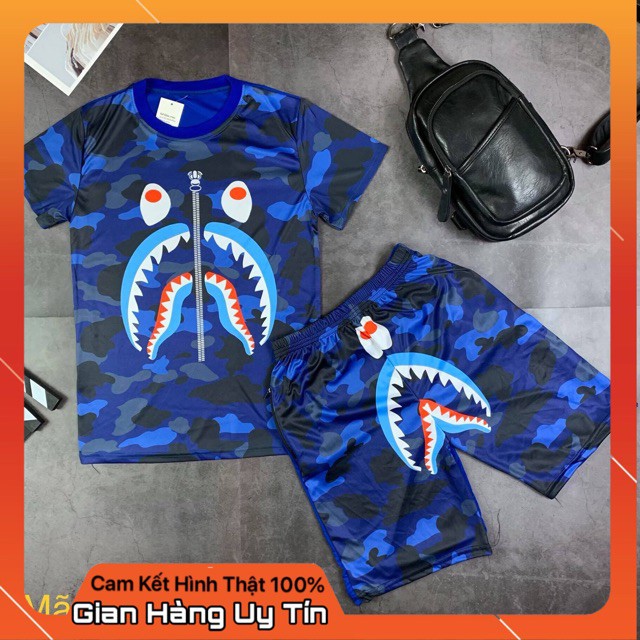 ✅[FREESHIP+Tặng Vòng]Set quần áo hè nam 3D Bape Xanh dương Giá rẻ