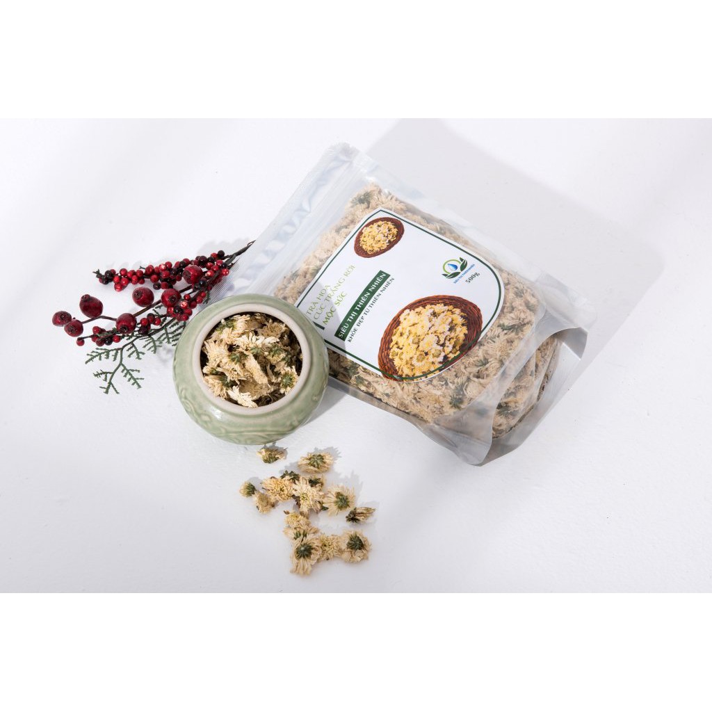 ️[GIÁ GỐC] - TRÀ HOA CÚC SẤY KHÔ NGUYÊN BÔNG Hoa cúc là cái tên quen thuộc mà trong chúng ta ai cũng biết nhưng tác dụng tuyệt vời mà hoa cúc mang lại cho con người thì thực sự không nhiều người biết. Trà hoa cúc có nguồn gốc hoàn toàn từ thiên nhiên được sản xuất ngay tại Việt Nam với nguyên liệu chính là bông cúc mới hé nở. Trà hoa cúc là loại dược liệu quý nhưng không khó tìm với nhiều tác dụng cực tốt cho sức khỏe(Đặc biệt là người cao tuổi) như ngăn ngừa huyết áp cao, thanh lọc và thải độc cho cơ thể, đẹp da, sáng mắt……Hãy cùng Siêu Thị Thiên Nhiên tìm hiểu các công dụng đáng kinh ngạc của trà hoa cúc nhé! 07 Tác Dụng Tuyệt Vời Của Trà Hoa Cúc Trà hoa cúc giúp ngăn ngừa được chứng cao huyết áp Xoa dịu các cơn đau Giải nhiệt và thanh lọc cơ thể Thải độc cho gan. Giúp tăng cường sức khỏe, kháng khuẩn, chống viêm. Trà hoa cúc giúp sáng mắt và đẹp da. An thần giúp giấc ngủ ngon và sâu hơn. Bảng Giá Trà Hoa Cúc Cách Sử Dụng Trà Hoa Cúc Sử dụng trà hoa cúc nguyên bông hàng ngày như một loại trà để tăng cường sức khỏe, chăm sóc da Cho nguyên liệu gồm 4-5 bông cúc khô vào ấm trà, cho nước sôi trên 100 độ vào. Ngâm khoảng 2 phút sau đó đổ nước 1 đi. Tuỳ theo người dùng cho thêm mật ong hoặc đường phèn vào, cho nước sôi vào sau 2 phút là có thể thưởng thức. Pha trà uống hàng ngày Quy Cách Đóng Gói Và Bảo Quản Trà Hoa Cúc Khối lượng tịnh: 100g, 200g, 500g, 1kg Sản phẩm có nguồn gốc hoàn toàn từ thiên nhiên Không chất bảo quản, hương liệu Trà hoa cúc đang được sử dụng rộng rãi bởi những tác dụng quá tuyệt vời mà loại dược liệu tự nhiên này mang tới cho sức khỏe con người. Vừa nhâm nhi thưởng thức cảm nhận hương vị thơm ngọt của vị trà, vừa có lợi cho sức khỏe. Cách bảo quản: Bảo quản nơi khô ráo thoáng mát Hạn sử dụng 12 tháng. Xuất xứ tại: Cơ sở siêu thị thiên nhiên (Hà Nội Việt Nam) Sản phẩm này không phải là thuốc và không có tác dụng thay thế thuốc chữa bệnh. #thaomocgt