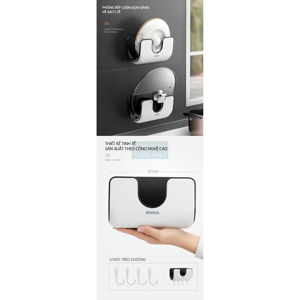 ️• Bộ sản phẩm bao gồm: 1 miếng dán + 1 giá đựng tùy màu + 4 móc treo • Miếng dính cao cấp chắc chắn trên bề mặt nhẵn phẳng, chịu lực lên đến 5kg mà không cần khoan hay đục tường. • Giá làm bằng chất liệu nhựa ABS cao cấp chống nước, thân thiện với môi trường. • 4 móc treo được gắn thông minh phía dưới giúp bạn treo muỗng, dao, kéo,… tùy ý muốn. • Treo được nắp, vung nồi có bề dày tối đa 8cm. • Thích hợp với mọi loại vung, nắp nồi hoặc chảo chiên, rán. • Kích thước: Như hình. • Xuất xứ: Hãng Ecoco – Nội địa Trung Quốc.
