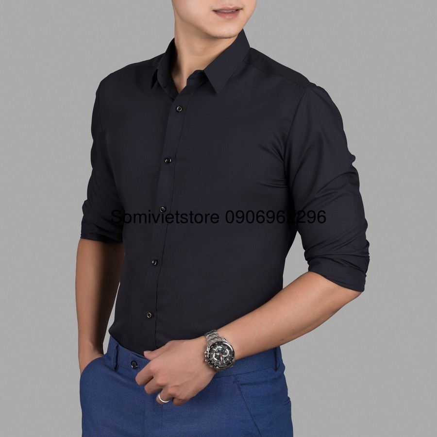 GIÁ SỈ_ Áo sơ mi nam đen dài tay dáng ôm