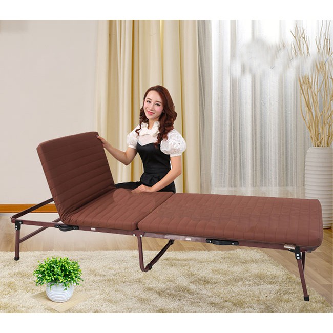 ️Giường gấp nâng đầu Hàn Quốc HQ80 Hãng Sản Xuất: Nikita Công Nghệ: Hàn Quốc Kích thước sử dụng (DxRxC): 1,9m x 0,8m x 0,35m Chiều dày lớp đệm: 7cm Kích thước gấp gọn: chiều dài 1,04m: chiều rộng 0,83m Khung giường: Thép hợp kim sơn tĩnh điện. Tải trọng: 120kg Trọng lượng: 18kg Bảo hành: 12 tháng Mô tả sản phẩm + Đệm: 7 cm được làm bằng chất liệu mút cao cấp nhập khấu Hàn Quốc, mềm mại không bị lún ép sau thời gian sử dụng dài, Đệm được cấu tạo bởi 2 lớp: Lớp trên cùng là lớp mút lỗ với 4 lỗ thoát khí tạo cảm giác thoáng mát cho người nằm, lớp bên dười là lớp mút xốp siêu nhẹ. + Khung giường: làm bằng thép sơn tĩnh điện bền & chắc chắn, nối với nhau bằng bản lề có thể gấp gọn sau khi sử dụng. + Chân giường có khóa chốt an toàn cố định giường. + Vỏ đệm cấu tạo bới chất vải mịn, không xù, có thể tháo rời, giặt sạch + Đầu giường: có thể nâng lên hạ xuống với 5 mức độ khác nhau (tối đa là 90 độ) rất tiện dụng trong lúc đọc sách, thư giãn hoặc bệnh nhân trong điều trị được bác sĩ chỉ định nằm cao đầu. Giường gấp hàn quốcđược thiết kế khá sang trọng và đẹp mắt. Đầu giường xếp có thể nâng lên và hạ xuống rất tiện lợi trong những lúc đọc sách, thư giãn hoặc trong điều trị khi bác sỹ chỉ định phải nằm cao đầu. Ngoài những tiện ích như vậy giường gấp hàn quốc HQ80 sau khi sử dụng có thể gấp gọn tối đa để tiết kiệm diện tích vì vậy rất phù hợp không gian văn phòng, khách sạn, ký túc xá, và nhưng trung tâm trăm sóc sức khỏe. Cửa hàng chuyên cung cấp các loại giường gấp hàn quốc giá rẻ Liên hệ : 0903365230 Và 083.77777.39 ➥ Website:WWW.TYTAKA.COM ➥ Số 101/28, Định ĐINH BỘ LĨNH P26 BÌNH THẠN