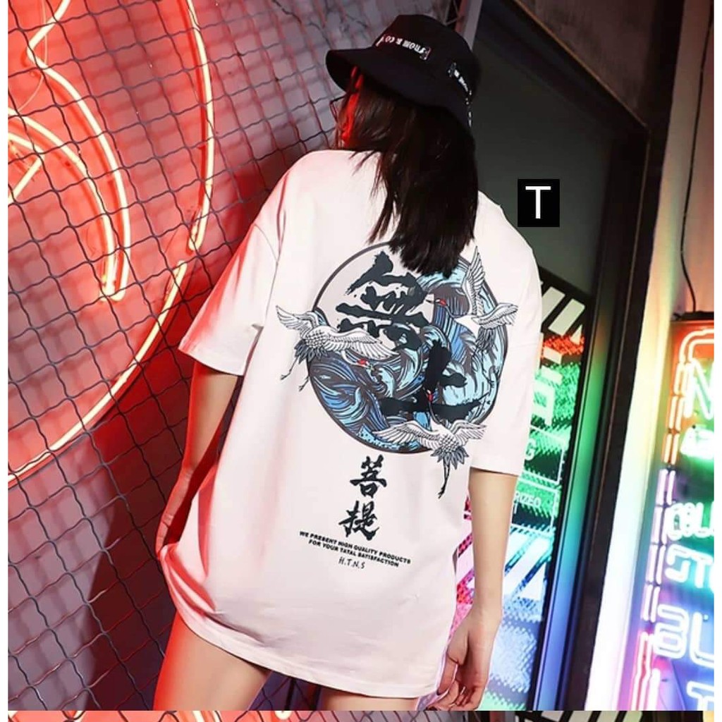 [Hàng 3 size] Áo phông hạc chữ tàu in lưng DTR0519 - Áo ngắn tay không cổ