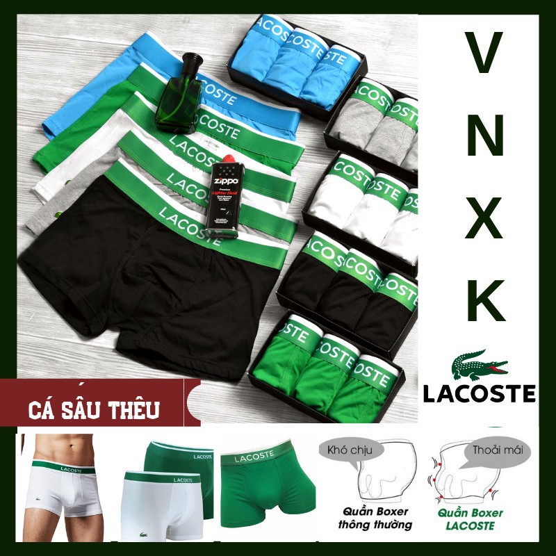 ️Quần lót đùi nam boxer cá sấu Lacoste hàng vnxk. Đã bao lâu rồi bạn chưa quan tâm đến cậu nhỏ của mình, thay quần lót mới với chất vải mềm mịn, thông thoáng co giãn sẽ giúp cho cậu nhỏ thoải mái và sành điệu hơn . HÃY TƯỞNG TƯỢNG BẠN SẼ HẤP DẪN như thế nào trong mắt người ấy. ?️MIỄN PHÍ VẬN CHUYỂN?️ - Bạn nhớ xem chính sách vận chuyển của Shopee để được MIỄN PHÍ nhé! Hoặc bạn có thể inbox, liên hệ trực tiếp với Shop, Shop sẽ tư vấn cho bạn! ➥ LƯU Ý: ĐỂ CHỌN MÀU BẠN CỨ CHỌN SỐ LƯỢNG CẦN MUA SAU ĐÓ GHI CHÚ HOẶC NHẮN TIN MÀU CHO SHOP. ?HƯỚNG DẪN CHỌN SIZE: SIZE L: 50-62kg SIZE XL: 60-79kg SIZE XXL: 80-95kg ⚡ Thông Tin Sản Phẩm - 95%: Cotton. Cotton là một loại chất liệu vải có đặc tính mềm mại, thoáng mát có độ thấm hút tốt, thoáng khí cao tránh gây hại cho da, mau khô nên không gây ẩm mốc thích hợp để sử dụng trong quần lót nam. - 5% Elastane Spandex trong thành phần giúp cho quần ôm nhẹ cơ thể . - Sợi co dãn giúp cho chất liệu vải có độ đàn hồi cao. - Cảm giác khô thoáng và thoải mái với chất liệu sợi bông tự nhiên. - Màu sắc trang nhã, chuyên nghiệp. - Thiết kế đai lưng Vải cao cấp thoải mái cho người mặc. - Quần sịp đùi may kiểu dài có thể mặc đi ngủ, đem lại cảm giác lịch lãm và sự tự tin. ➥ CAM KẾT - Bao trả hàng/hoàn tiền 100% trong vòng 60 ngày vì bất kỳ một lý do gì chỉ cần bạn muốn trả lại hàng Shop luôn đồng ý - Đổi size, đổi sản phẩm khác, trả lại hàng hoàn tiền đơn giản, nhanh chóng. - Hàng luôn có sẵn tại kho của Shop, nên ngay khi bạn đặt hàng thì sẽ có nhân viên đóng gói ngay lập tức cho bạn. ✔️HƯỚNG DẪN BẢO QUẢN VÀ SỬ DỤNG - Lộn trái khi giặt giúp mau sạch và bền hơn. - Để khô tự nhiên, phơi trong bóng râm thoáng mát. - Không sử dụng hóa chất, thuốc tẩy trực tiếp lên sản phẩm, không ngâm quá lâu trong dung dịch tẩy. - Là ủi ở nhiệt độ dưới 120 độ C. *** Lưu ý: Sản Phẩm hàng cực Phẩm, cá sấu thêu không phải in, dán, đường kim mũi chỉ sắc sảo, chất vải mát mịn không ra màu, bao giặc máy, tem mác ffầy đủ nhé anh em. Đặt sỉ >100 cái tại Sài Gòn liên hệ: ( a.Văn) Tư vấn khách hàng chat online 24/24 ➥ HÃY MUA NGAY HÔM NAY ĐỂ NHẬN TẤT CẢ NHỮNG ƯU ĐÃI TỪ SHOP. ➥ HÃY NHẤN THEO DÕI SHOP ĐỂ THƯỜNG XUYÊN CẬP NHẬT CÁC SẢN PHẨM VÀ GIÁ ƯU ĐÃI MỚI NHẤT NHÉ. #quầnlótnam #quầnsịpnam #quầnxì #đồlótnam #quanlotnamdep #quầnlótnamđẹp #đồlót #dolot #dolotnam #quanxi #quầnxì #quansip #quầnsịp #quanlot #quầnlót #sipnam #quansipnam