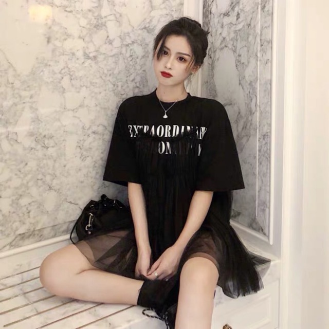 [HÀNG ORDER] Váy thun babydoll phối lưới xoè xếp li siêu dễ thương ( Có ảnh thật ) - Dài tay