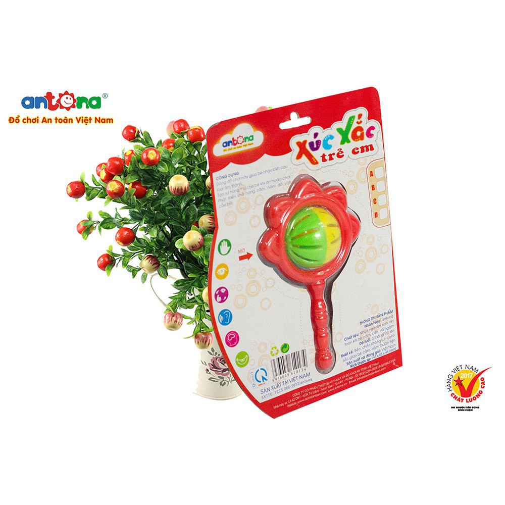 ️Khi nào bé có thể chơi đồ chơi xúc xắc➥ Khi vừa sinh ra các bé đã có thể cầm nắm một số vật nhỏ xung quanh mà bé chạm phải nhưng giai đoạn tốt nhất để cho các bé thực sự phát triển khả năng cầm nắm của mình là từ 3 tháng tuổi trở lên. Ở giai đoạn này các bé nhận biết được mọi thứ xung quanh mình rõ ràng hơn, đôi bàn tay cũng trở lên khéo léo để cầm mọi thứ chắc chắn hơn. Đây là khoảng thời gian tốt nhất để bố mẹ cho các bé tập chơi các loại đồ chơi có tính chất cầm, nắm. Đồ chơi xúc xắc trẻ em sẽ là lựa chọn tuyệt vời nhất cho các bậc phụ huynh vào lúc này. Sản phẩm Xúc xắc chùy của Công ty CP TBKT và Đồ Chơi An Toàn Việt Nam là một sản phẩm đồ chơi khá thú vị mà bố mẹ có thể dành cho bé trong độ tuổi này. Cũng như một số đồ chơi xúc xắc trẻ em khác, Xúc xắc chùy mang lại sự thích thú cho bé qua những màu sắc rực rỡ. tươi sáng và âm thanh vui nhộn. Xúc xắc chùy giúp bé nhận biết các loại âm thanh và phát triển khả năng cầm, nắm đồ vật. Xúc xắc chùy chắc chắn là món quà đáng yêu và ý nghĩa nhất dành cho thiên thần nhỏ của bạn. ĐẶC ĐIỂM NỔI BẬT + Sản phẩm Xúc xắc chùy của Công ty Đồ Chơi An Toàn Việt Nam được làm từ 100% nhựa nguyên sinh, đảm bảo tuyệt đối an toàn cho bé khi vui chơi, đặc biệt là khi bé cầm, nắm và gặm sản phẩm. + Các chi tiết được thiết kế không có ba via, các cạnh sắc đều được vê tròn, đảm bảo an toàn cho trẻ khi sử dụng. + Màu sắc đa dạng, phong phú và rất bắt mắt với trẻ nhỏ. + Hình dáng sản phẩm rất đáng yêu, ngộ nghĩnh và gần gũi với trẻ nhỏ. + Âm thanh có độ lớn vừa phải, phù hợp với thính giác của trẻ. + Sản phẩm gọn, xinh xắn, vừa với tay cầm của trẻ. LỢI ÍCH MANG LẠI Trong quá trình chơi với sản phẩm Xúc xắc chùy, bé sẽ học hỏi thêm được những kỹ năng và kiến thức cần thiết cho sự phát sau này của bé. +Bé tập nhận biết màu sắc: Sản phẩm có rất nhiều màu sắc sinh động, bắt mắt, giúp bé tập nhận biết các màu sắc khác nhau. + Bé phát triển khả năng cầm, nắm đồ vật: Bố mẹ sẽ cho bé chơi bằng cách dạy bé tập cầm, nắm, và lắc xúc xắc. + Bé tăng cường khả năng vận động: Xúc xắc sẽ chỉ phát ra âm thanh khi được chạm vào. Nếu muốn nghe âm thanh của đồ chơi, trẻ cần phải chạm được vào xúc xắc hoặc cầm và lắc nhẹ. Điều này sẽ giúp bé phát triển hoàn thiện hơn trong những vận động đơn giản. +Bé tập phân biệt âm thanh: Mỗi loại đồ chơi sẽ có những âm thanh khác nhau, bé sẽ phải lắng nghe để tìm ra được âm thanh mà mình thích nhất.