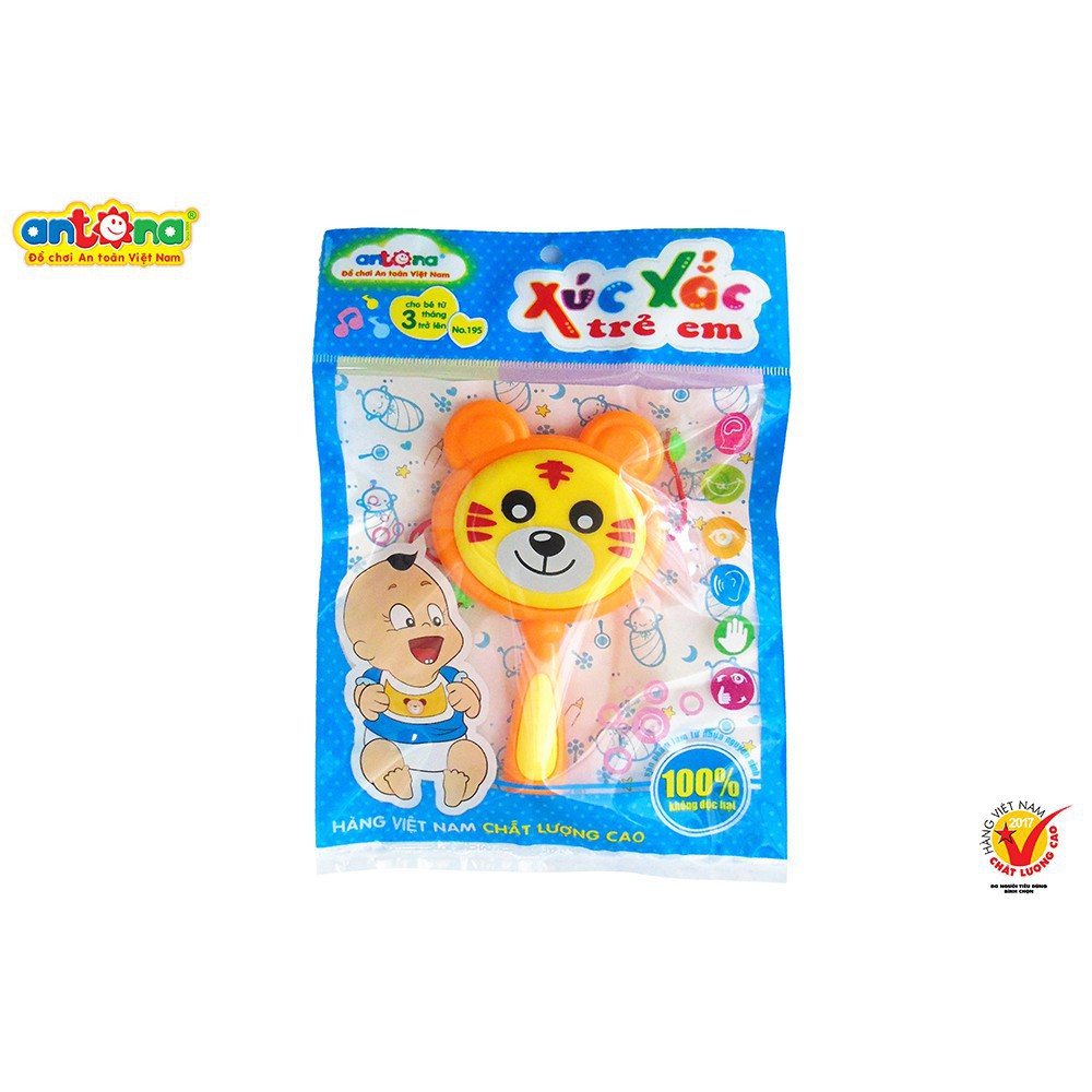 ️Lưu ý: sản phẩm có 3 mẫu: Trống ếch, trống gấu và trống sư tử. Shop giao màu ngẫu nghiên ĐẶC ĐIỂM NỔI BẬT + Sản phẩm Xúc xắc trống của Công ty Đồ Chơi An Toàn Việt Nam được làm từ 100% nhựa nguyên sinh, đảm bảo tuyệt đối an toàn cho bé khi vui chơi, đặc biệt là khi bé cầm, nắm và gặm sản phẩm. + Với thiết kế mới rất độc đáo, xúc xắc trống có nhiều mẫu mã và hình dáng ngộ nghĩnh khác nhau như hình con ếch, hình con hổ và hình con gấu. + Các chi tiết được thiết kế không có ba via, các cạnh sắc đều được vê tròn, đảm bảo an toàn cho trẻ khi sử dụng. + Màu sắc đa dạng, phong phú và rất bắt mắt với trẻ nhỏ + Hình dáng sản phẩm rất đáng yêu, ngộ nghĩnh và gần gũi với trẻ nhỏ. + Âm thanh có độ lớn vừa phải, phù hợp với thính giác của trẻ. + Sản phẩm gọn, xinh xắn, vừa với tay cầm của trẻ. LỢI ÍCH MANG LẠI + Bé tập nhận biết màu sắc: Sản phẩm có rất nhiều màu sắc sinh động, bắt mắt, giúp bé tập nhận biết các màu sắc khác nhau. + Bé phát triển khả năng cầm, nắm đồ vật: Bố mẹ sẽ cho bé chơi bằng cách dạy bé tập cầm, nắm, và lắc xúc xắc. + Bé tăng cường khả năng vận động: Xúc xắc sẽ chỉ phát ra âm thanh khi được chạm vào. Nếu muốn nghe âm thanh của đồ chơi, trẻ cần phải chạm được vào xúc xắc hoặc cầm và lắc nhẹ. Điều này sẽ giúp bé phát triển hoàn thiện hơn trong những vận động đơn giản.