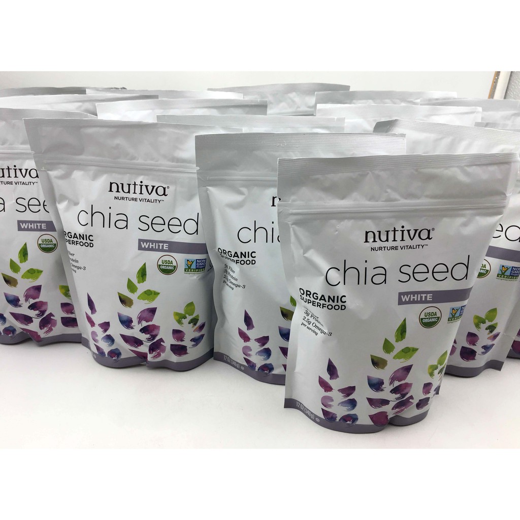 ️Xuất xứ: Mỹ Hạn sử dụng: 12/2020 ( hàng về liên tục nên các bạn inbox để biết date mới nhất) Hạt Chia có tên đầy đủ là Nutiva Chia Seed của thương hiệu Nutiva (Mỹ). Sản phẩm được Nutiva cho ra mắt chung với dòng chia đen nhưng giá thành cao hơn do để thu hái và phân tách được hạt chia trắng tốn rất nhiều công sức. Bên cạnh đó Hạt chia trắng cũng có mùi vị trung hòa dịu nhẹ hơn hạt chia đen. Nhiều người thích uống chia trắng vì sự cao cấp của nó cũng như mùi vị tinh tế này. Về giá trị dinh dưỡng Hạt chia trắng cũng được đánh giá cao hơn do quy trình chế biến công phu hơn chia đen rất nhiều. Công dụng của hạt Chia 1. Giảm cân bằng hạt Chia Nutiva Một hạt chia Nutiva Chia Seed có khả năng hấp thụ nước gấp 16 lần trọng lượng của nó, khi vào cơ thể sẽ hấp thu nước và nở thành khối gel lớn, lấp đầy bao tử, tạo cảm giác no. Đồng thời làm chậm tốc độ tiêu hóa và hấp thu carbohydrate tại đây. Điều này làm cho cơ thể không còn cảm giác đói và không thèm ăn trong thời gian dài Với thành phần chứa đến 44% carbohydrate (trong đó có 50% là chất xơ), 16% protein, 41% chất béo (phần lớn là axit alpha-linolenic – một axit béo omega 3), hàm lượng canxi cao gấp 5 lần so với sữa, kali cao gấp 2 lần so với chuối, chất chống oxy hóa cao gấp 3 lần so với quả việt quất… Hạt Chia cung cấp đầy đủ năng lượng hoạt động cho cơ thể, người giảm cân không phải lo thiếu hụt các chất dinh dưỡng cần thiết cho cơ thể. Giảm cân bằng hạt Chia nhanh chóng nhưng vẫn an toàn sức khỏe 2. Hạt Chia hỗ trợ sức khỏe cho tim, thần kinh, sinh sản Theo Cleveland Clinic Foundation (Mỹ), hạt Chia có chứa omega-3 và omega-6 giúp hỗ trợ miễn dịch, hệ thống tim mạch, thần kinh và chức năng sinh sản. 3. Hạt Chia Nutiva giúp giảm đau và chống viêm Hàm lượng omega-3 cao có trong Chia đã giúp bôi trơn các khớp xương và giữ cho chúng dẻo dai. Ngoài ra, Omega-3 được chuyển đổi thành prostaglandin (các acid béo không bão hòa ở các mô) có tác dụng làm giảm đau và chống viêm ruột, viêm khớp… 4. Hạt chia giúp làm đẹp da, tóc và móng: Hạt chia chứa Omega 6 ALA và hàm lượng chất chống oxy hóa cao (giá trị ORAC tương đương 10.000 vitamin E) giúp bạn có một làn da đẹp, làm chậm tiến trình lão hóa cơ thể. Hơn nữa, chia là một nguồn chất đạm tự nhiên rất lớn chứa 20% chất đạm trong mỗi phần ăn giúp móng khỏe, tóc đẹp. 5. Bổ mắt: Hạt chia cung cấp hàm lượng omega 3 cao hơn cá hồi g