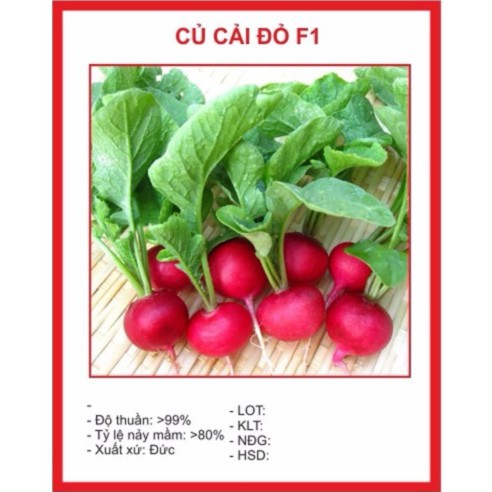 ️- SHOP Hạt giống - Mua sắm thả ga, giá cả tốt nhất ! - Giao hàng TOÀN QUỐC - Thanh toán khi nhận hàng COD ---------------------------------------------- * GIỚI THIỆU SẢN PHẨM - Số hạt/gói: 5gr - Tỷ lệ nẩy mầm: >80% - Mùa Vụ: Thu Đông Xuân - Nhiệt độ gieo: 15 - 25 độ - Nhiệt độ ST: 10 - 35 độ - Thời gian ra hoa: 60-70 ngày ---------------------------------------------- * HƯỚNG DẪN TRỒNG ĐƠN GIẢN 1. Chuẩn bị vật dụng - chất trồng: -Chậu nhỏ (hoặc chậu to nếu sau này không muốn thay chậu nữa) hoặc khay ươm nếu gieo số lượng nhiều. Dù bạn dự tính trồng thẳng trong chậu hoặc sẽ chuyển xuống đất trồng thì cũng nên uơm hạt trong chậu trước vì dễ quản lí đô ẩm, sâu bệnh, dinh dưỡng... -Thuốc trừ nấm. -Đất sạch giàu dinh dưỡng + vỏ trấu hoặc xơ dừa, mụn xơ dừa, (đã hoai mục), phân gà, phân bò... Thông thường tỷ lệ phổ biến như sau: Đất sạch - vỏ trấu, xơ dừa, phân gà, bò = 7 : 3 - Hoặc có thể dùng đất sạch đóng bao sẵn – mua ở cửa hàng 2. Tiến hành gieo hạt:. -Chất trồng sau khi trộn đều, chúng ta cho vào chậu hoặc khay uơm. -Phun thuốc trừ nấm lên mặt chất trồng (bước này khá quan trọng), tốt nhất phun liên tục 2-3 lần để thuốc thấm xuống sâu hơn. (nếu mua đất sạch thì không cần) -Ngâm hạt:Ngâm hạt trong nước 3 sôi 7 lạnh trong 5-7h -Sau khi ngâm hạt dùng giấy ướt (có thể dùng giấy vệ sinh gấp lại thành nhiều lớp) để ủ hạt (cho hạt vào giấy, và gấp đôi chúng lại), sau đó cho vào 1 hộp nhỏ, rồi đậy kín lại và cho vào chỗ mát mẻ (luôn để giấy ở trạng thái ẩm cao). Để như vậy đến khi hạt nhú mầm xanh(tùy hạt mà từ 5-15 ngày) thì mang gieo ra đất đã được làm tơi xốp – nhớ làm nhẹ tay kẻo gẫy mầm nhé! (thường áp dụng cho các loại hạt yêu cầu kĩ thuật xíu:hạt giống hoa các loại, dâu tây, nho, hồng ri ba tư, nho gỗ, tử đằng... 3. Chăm sóc sau khi gieo hạt: -Nhiệt độ:tùy loại mà nhiệt độ để nẩy mầm dao động từ khoảng 20-30oC. Không cần quá chú trọng đến vấn đề này vì chỉ cần che lưới là ổn rồi. -Độ ẩm của đất trồng:luôn đảm bảo độ ẩm cho đất, không được để đất bị khô hoặc quá ẩm -Đặt chậu hoặc khay uơm ở nơi có ánh sáng khuyếch tán (che lưới lan màu đen loại 50%), vì hạt cần ánh sáng để nẩy mầm, nhưng nếu cường độ quá mạnh sẽ đốt cháy hạt và làm khô chất trồng nhanh chóng -Thay chậu hoặc chuyển vào đất trồng: khi cây con đã lớn (thân đủ cứng cáp, rễ mạnh...), chúng ta có thể chuyển qua chậu to hơn hoặc chuyển xuống đất trồng trực tiếp. Nếu trước đó đã gieo hạt trong chậu to thì không cần sang chậu. ---------------------------------------------------------------------------------------------------------- SDT:0898.319.473 --------------------------------------------------------------------------------------------------------- #Câycảnhvàhạtgiống #caycanhvahatgiong #hatgiong #hạtgiống #cucaido #củcảiđỏ