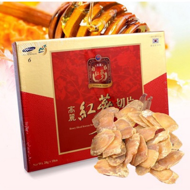 ️Hồng sâm lát tẩm mật ong Hàn quốc SAMBOK 200g. CAM KẾT :Hồng sâm lát tẩm mật ong Hàn quốc SAMBOK 200g. - Hàng Chuẩn - Giá Cạnh Tranh Nhất - Hoàn Tiền 100% Nếu SP Ko Đúng Mô Tả - Tuyển Đại Lý & CTV Toàn Quốc [ Hotline : 096 105 8818 ] --------------------------------------------------------------------------------- Quy cách: 20g/hộp nhỏ x 10 hộp nhỏ/hộp to Sâm lát tẩm mật ong Sambok Food Hàn Quốc 200gam Loại : Hồng sâm 6 năm tuổi ... Hạn sử dụng. T7_2021 Dạng thành phẩm : Dạng thái lát Tác dụng : Hồng sâm lát tẩm mật ong Hàn quốc SAMBOK 200g. Những tác dụng của Hồng sâm Hàn Quốc thể hiện rất rõ ở những người suy nhược, rối loạn chức năng cơ thể, người cao tuổi. Vì không chỉ ổn định huyết áp, vị thuốc còn làm giảm mỡ máu, điều hòa đường huyết, gia tăng thể lực và trí lực, cải thiện tình trạng mất ngủ, một số rối loạn thần kinh, rối loạn sắc tố da, rụng tóc ở người cao tuổi. 1. Bồi bổ sức khỏe toàn diện, tăng cường sức đề kháng của cơ thể, điều hòa quá trình trao đổi chất, giải độc tốt. 2. Tăng cường chức năng gan, thận, tiền liệt tuyến. 3. Lợi tiểu, bổ máu, tuần hoàn máu. 4. Điều trị xuất huyết, chảy máu, cân bằng và ổn định huyết áp. 5. Bồi bổ thần kinh, chống mệt mỏi, kém ngủ, giảm stress. 6. Điều hòa đường ruột, dạ dày. 7. Tăng khả năng chống nhiễm trùng của người bị tiểu đường & HIV. 8. Chống lão hóa, tăng khả năng sinh lý 9. Chống xơ cứng động mạch và tăng khả năng miễn nhiễm. Thành phần : Hồng sâm Hàn Quốc, mật ong Hàn Quốc. Cách sử dụng : Ngày dùng từ 2-3 lần. mỗi lần từ 2-3 lát Bán buôn toàn quốc #samlattammatong #samlat #samlatmatong #samcutammatong #samcu #samhanquoc #samlinhchi