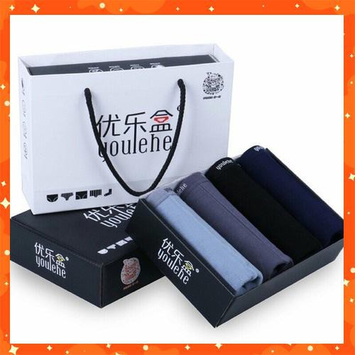 ️Shop Vinhquang01 xin kính chào quý khách! 1 hộp 4 chiếc nhé Bộ 4 quần Sịp đùi nam Thông hơi Youlehe Combo 4 quần sip đùi thông hơi Youlehe - kèm hộp đựng Quần sịp đùi nam dáng dài đến đùi, ôm sát body trẻ trung, cuốn hút mà vẫn tạo cảm giác thoải mái. Thiết kế quần "thông hơi" với các lỗ nhỏ, cho bạn tự tin vận động, tạo vẻ quyễn rũ đầy nam tính. Cạp chun bản rộng co giãn, phù hợp với nhiều lứa tuổi, không gây hằn trên da. Chất liệu: cotton, ployeste, spandex. Màu sắc: đen, ghi, xanh đen, xanh nhạt. #quầnlót #quầnlótnam #hộp4quầnlótnamYoulehe Cảm ơn quý khách đã quan tâm đến sản phẩm! Điện thoại/zalo 0944820866