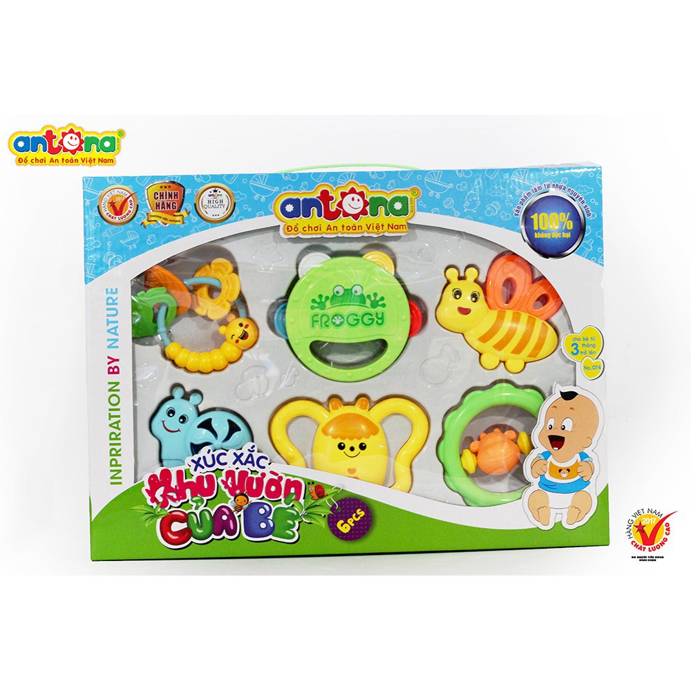 ️Khi vừa sinh ra các bé đã có thể cầm nắm một số vật nhỏ xung quanh mà bé chạm phải nhưng giai đoạn tốt nhất để cho các bé thực sự phát triển khả năng cầm nắm của mình là từ 3 tháng tuổi trở lên. Ở giai đoạn này các bé nhận biết được mọi thứ xung quanh mình rõ ràng hơn, đôi bàn tay cũng trở lên khéo léo để cầm mọi thứ chắc chắn hơn. Đây là khoảng thời gian tốt nhất để bố mẹ cho các bé tập chơi các loại đồ chơi có tính chất cầm, nắm. Đồ chơi xúc xắc trẻ em sẽ là lựa chọn tuyệt vời nhất cho các bậc phụ huynh vào lúc này. Benrikids xin giới thiệu bộ Đồ Chơi Xúc Xắc Antona Hộp 6 Chiếc Cho Bé của hãng Antona một món đồ chơi thú vị giúp bé phát triển trong thời kì đầu phát triển. Bộ đồ chơi là một hộp gồm 5 xúc xắc với các hình dáng khác nhau ngộ nghĩnh đáng yêu và 1 ngậm nướu bạn sâu nhỏ dễ thương. Đồ chơi xúc xắc thu hút bé bởi âm thanh và màu sắc giúp bé phát triển thị giác và thính giác. Ngoài ra các xúc xắc còn có tay cầm giúp bé rèn luyện khả năng cầm nắm của bé ngay từ lúc nhỏ từ đó nâng cao sự khéo léo của đôi tay bé. Bộ sản phẩm được làm từ 100% nhựa nguyên sinh, đảm bảo tuyệt đối an toàn cho bé khi vui chơi, đặc biệt là khi bé cầm, nắm và gặm sản phẩm. Các chi tiết được thiết kế không có ba via, các cạnh sắc đều được vê tròn, đảm bảo an toàn cho trẻ khi sử dụng. Bộ đồ chơi gồm 5 xúc xắc khác nhau với hình dáng và màu sắc bắt mắt giúp bé phát triển khả năng cầm, nắm đồ vật của bé, tăng cường khả năng tư duy phản xạ giữa tay và mắt,... Ngoài ra bộ đồ chơi còn gồm 1 ngậm nướu hình bạn sâu nhỏ mềm mại giúp bé làm dịu cơn đau nướu, phát triển vòm miệng của bé. Thông tin chi tiết Đồ Chơi Xúc Xắc Antona Hộp 6 Chiếc Cho Bé: Bộ sản phẩm được làm từ 100% nhựa nguyên sinh, đảm bảo tuyệt đối an toàn cho bé khi vui chơi, đặc biệt là khi bé cầm, nắm và gặm sản phẩm. Bộ đồ chơi gồm 5 xúc xắc với hình dáng ngộ nghĩnh đáng yêu, và 1 ngậm nướu bạn sâu nhỏ Bé tập nhận biết màu sắc: Sản phẩm có rất nhiều màu sắc sinh động, bắt mắt, giúp bé tập nhận biết các màu sắc khác nhau. Bé phát triển khả năng cầm, nắm đồ vật: Bố mẹ sẽ cho bé chơi bằng cách dạy bé tập cầm, nắm, và lắc xúc xắc. Chiếc ngậm nướu giúp làm dịu cơn đau nướu của bé Hình ảnh thiết kế, màu sắc mới lạ với màu xanh dương chủ đạo theo chủ đề các loài vật trong khu vườn Màu sắc đa dạng, phong phú và rất bắt mắt với trẻ nhỏ. Kích thước: 30x41x5.5 cm Xuất xứ: Việt Nam #xucxac #dochoixucxac #dochoichotresosinh #xucxacchuong #luclac #xucxacgau