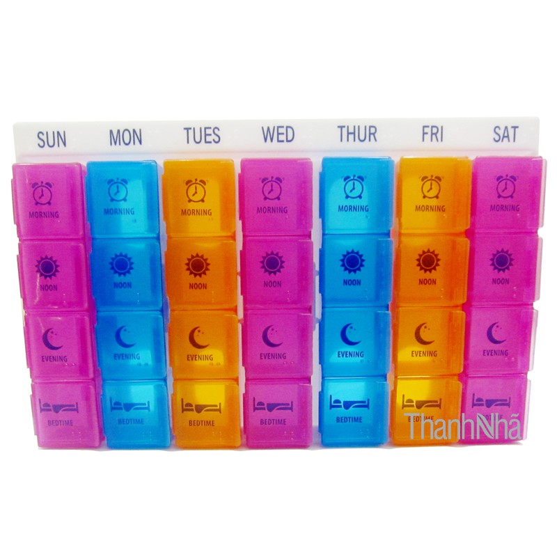 ️Hộp chia thuốc 7 ngày 28 ô tiện lợi Greetmed Thương hiệu: Greetmed - Hộp đựng thuốc du lịch 28 ô thiết kế nhỏ gọn tiện lợi, dễ dàng mang di chuyển. - Các ô có đánh dấu tên các ngày trong tuần, giúp việc uống thuốc an toàn hơn. - Chất liệu an toàn cho sức khỏe người sử dụng. - Các ô hoàn toàn kín, đảm bảo không vô nước hoặc thuốc tiếp xúc không khí. - Dùng để chia thuốc, phân liều lượng theo chỉ định của bác sĩ. - Hộp chia thuốc 7 ngày dễ mở - đóng kín, giúp bảo quản tốt thuốc và các loại vitamin. - Mỗi hộp đơn có 4 ngăn chứa chữ nổi “Sáng – Trưa – Chiều – Tối” giúp ghi nhớ, tiện sử dụng cho người hay quên, người cao tuổi, bận rộn, hay đi du lịch… - Bộ sản phẩm gồm 07 hộp tương ứng với 07 ngày trong tuần - Đảm bảo độ kín cho thuốc khi mang đi làm, đi du lịch.. - Hộp chia thuốc 7 ngày 28 ô, mỗi ngày gồm 4 ô (sáng - trưa - chiều- tối), mỗi ngày là 1 màu sắc khác nhau - Màu sắc: Hồng, Cam, Xanh Dương #thanhnha.vn #hopphantuoc7ngay #greetmed