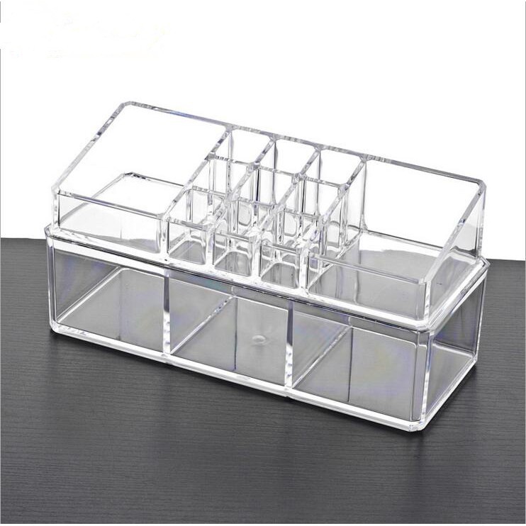 ️Hộp đựng 3 ngăn chữ nhật 2 tầng ô son - Chất liệu: Nhựa Acrylic dày đẹp - sáng bóng nhẹ & khó vỡ. - Chi tiết: Hộp có 1 tầng đựng bông, 1 tầng son - Kích thước: 23 x 9.2 x 11 cm - Màu sắc: Trong suốt. Lưu ý: vì là sản phẩm nhựa, nên có thể có những vết xước nhỏ, nhưng không hề ảnh hưởng đến chất lượng tổng quan sản phẩm.