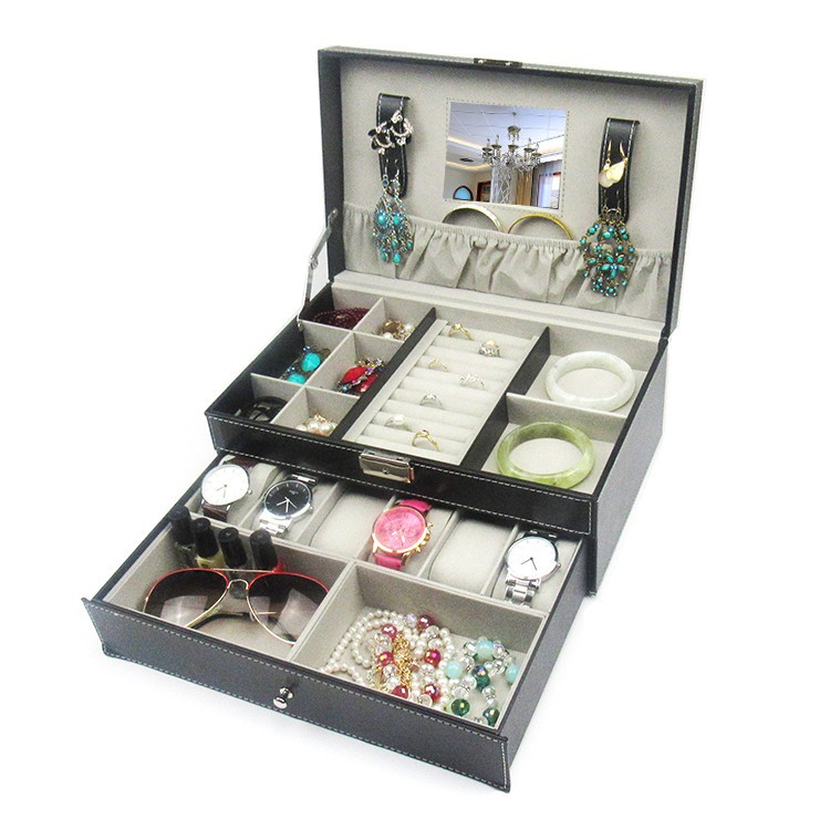 ️Hộp đựng 6 đồng hồ + trang sức 2 tầng - Chất liệu da Pu, khung gỗ bọc da - Hộp gồm có 6 ngăn để đồng hồ, ngăn trên đựng nhẫn, dây chuyền vòng tay - Hộp khóa tầng trên